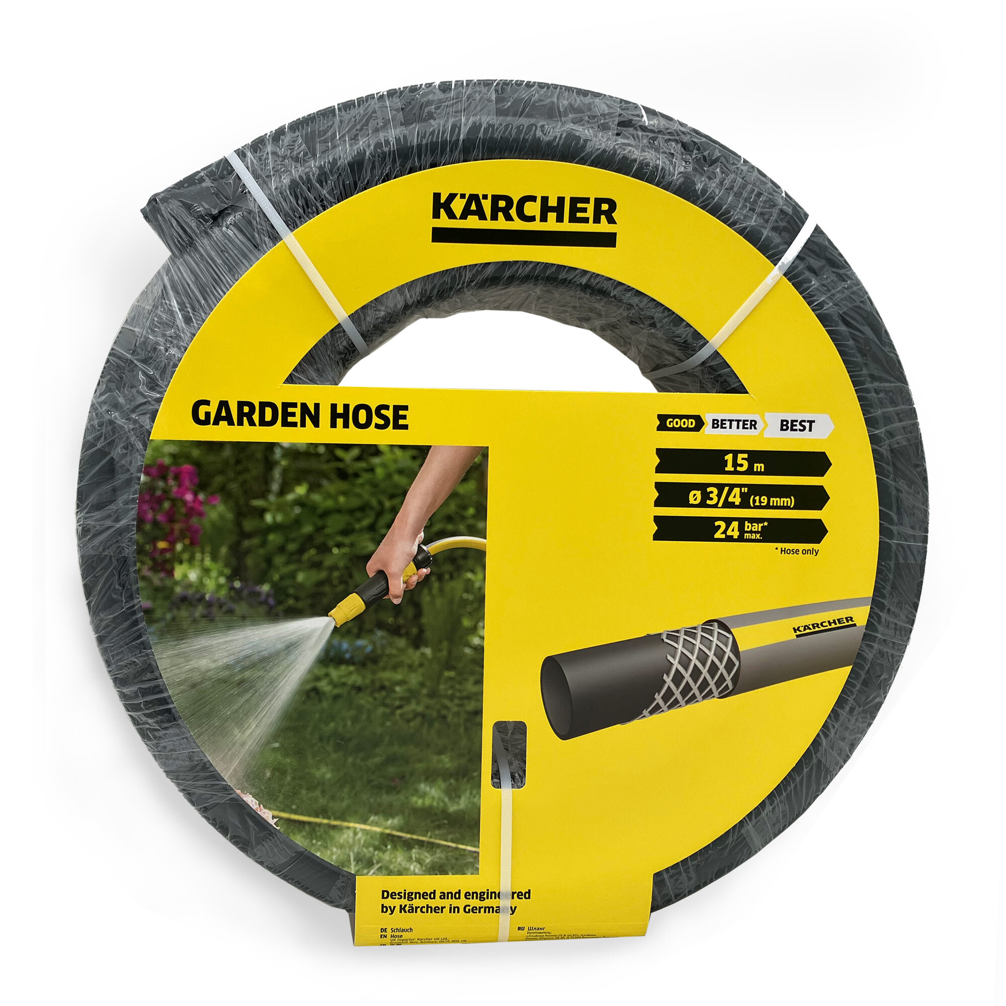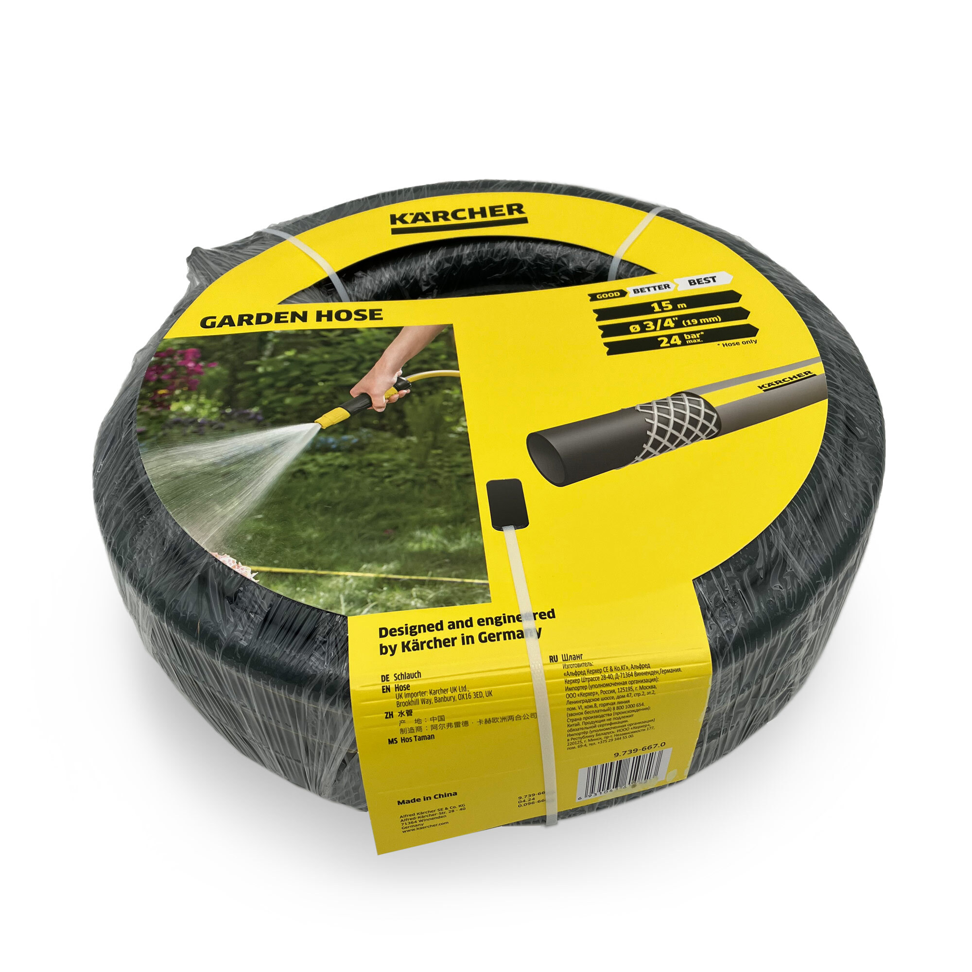 Высококачественный садовый шланг диаметром 3/4", 15 метров, прочный, устойчивый к перегибам. Особенно удобен при поливе средних и больших по площади садов. Этот шланг был изготовлен из высококачественного многослойного материала и с улучшенными свойствами, благодаря чему обеспечивает постоянный поток воды. Давление на разрыв - 24 бар.