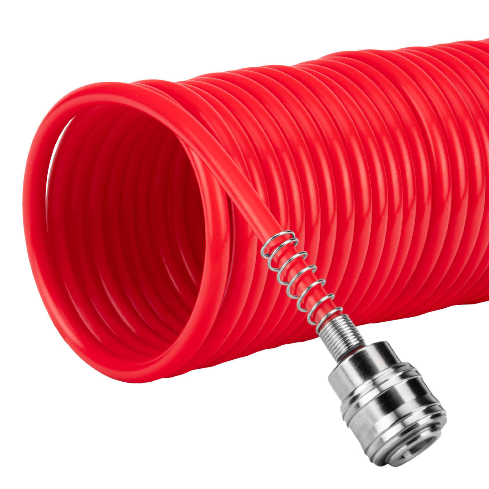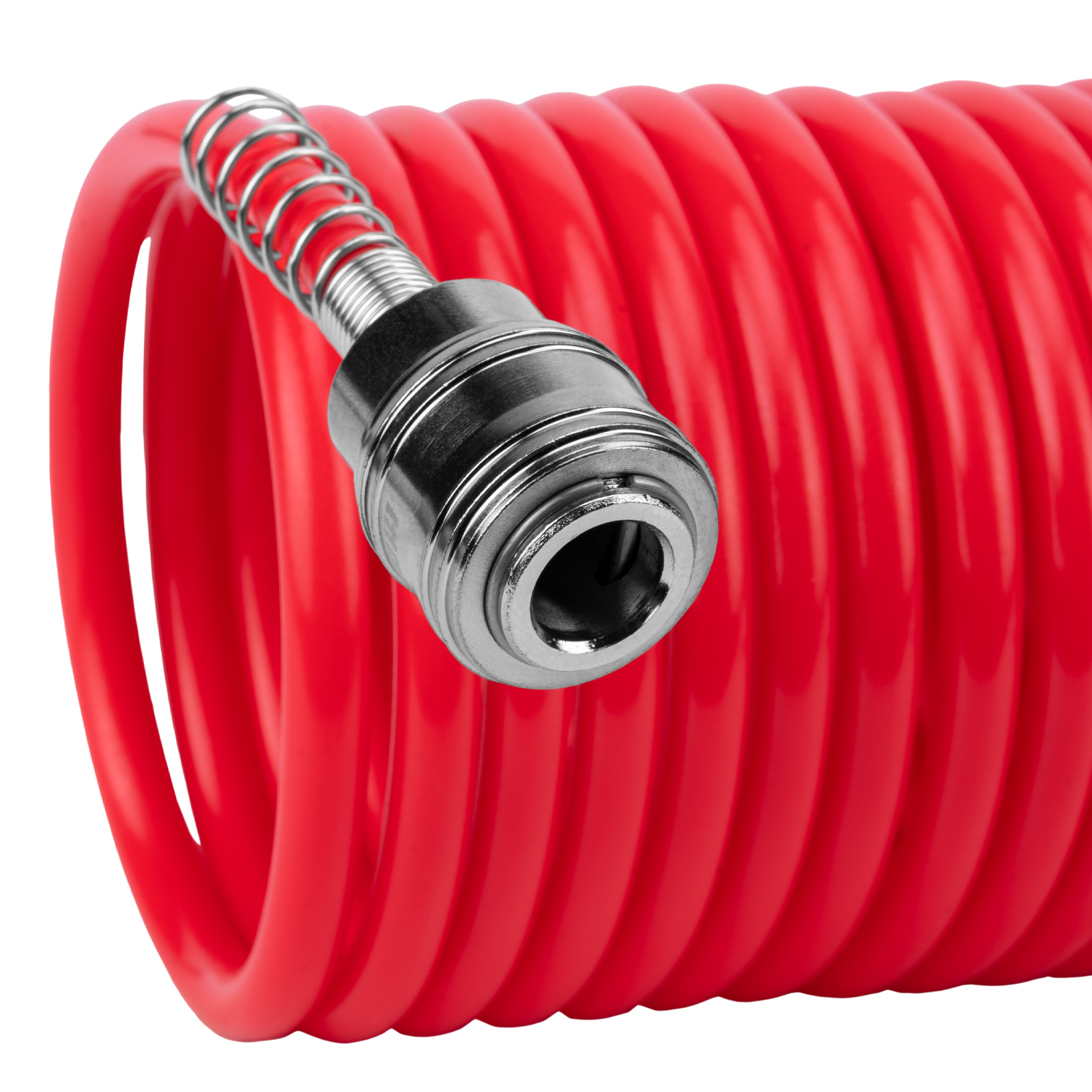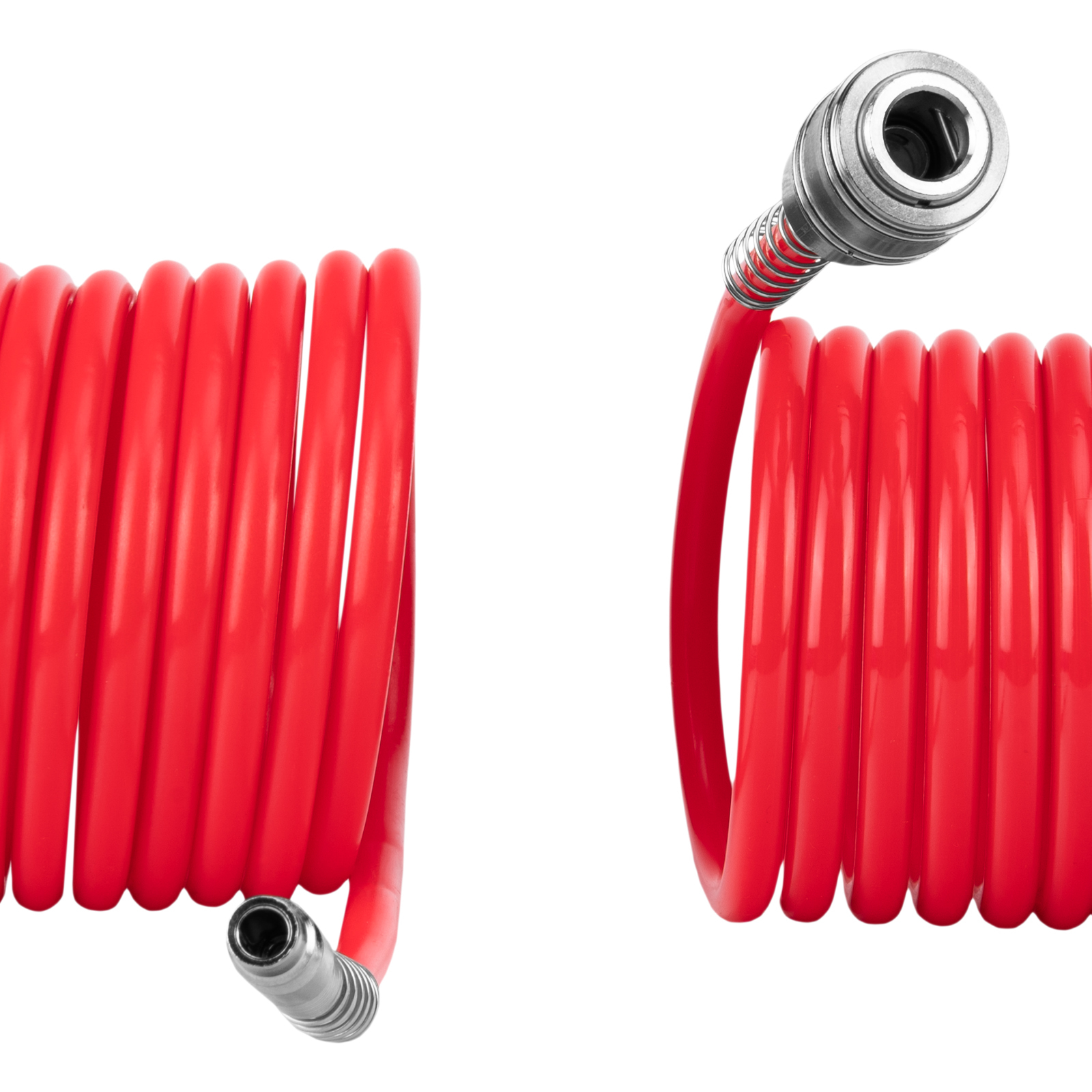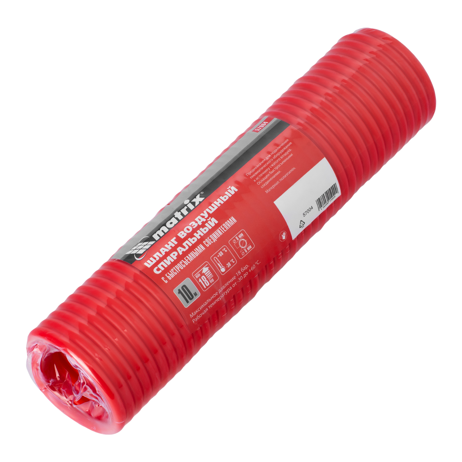 Спиральный воздушный шланг Matrix 57004 длиной 10 м, с быстросъемными соединениями, используется для подключения пневмоинструментов к компрессору. Изготовлен из легкого полиэтилена, за счет чего даже длительная работа не вызывает усталости. Имеет форму спирали, поэтому его не нужно скручивать после работы. Рукав пригодится в автосервисе, слесарной мастерской, а также во время отделочных работ.