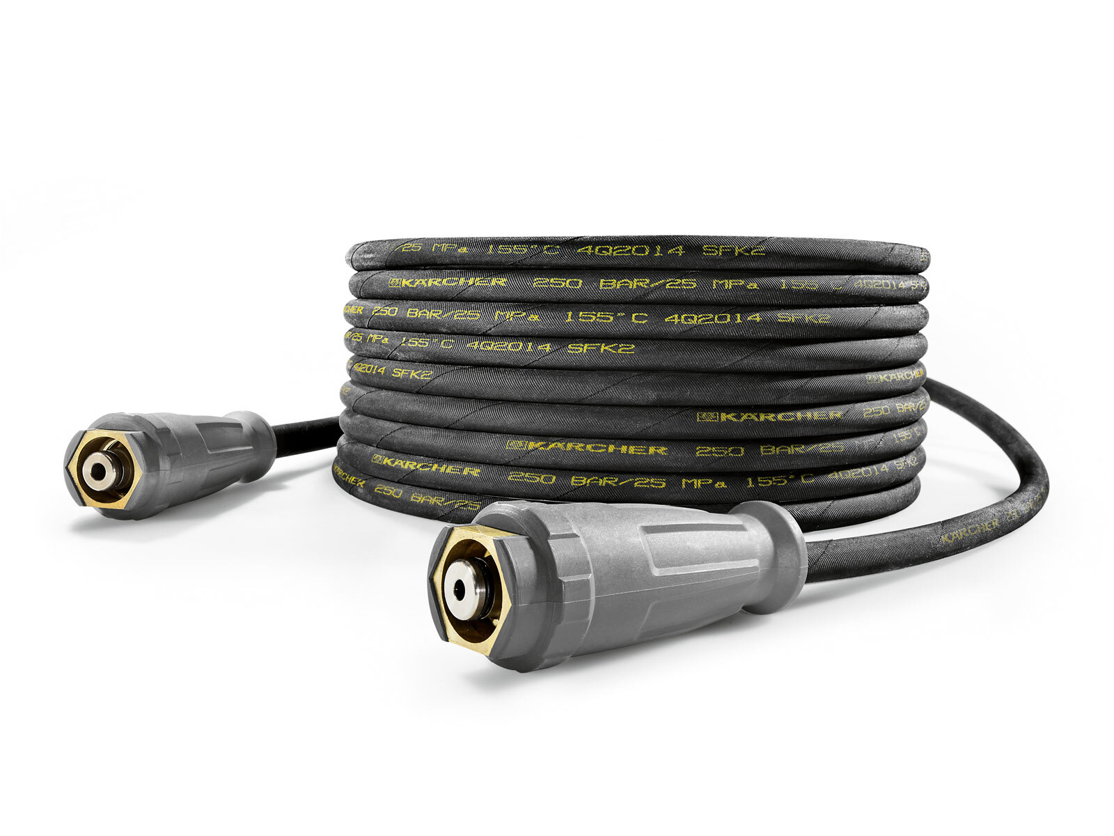 Шланг высокого давления TR - с разъемами EASY!Lock (система быстрого соединения EASY!Lock) с обеих сторон, с защитой от перегиба, DN 6/155°C/250 бар, 10 метров. Данная модель может быть использована в качестве удлинительного шланга, расширяющего радиус действия аппарата, тем самым обеспечивая дополнительный комфорт и мобильность для оператора, т.к. отпадает необходимость в транспортировке аппарата к месту мойки.