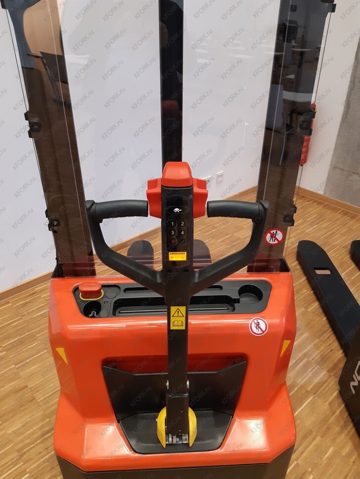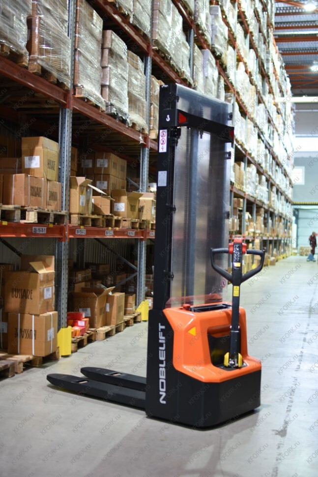 Штабелер самоходный NOBLELIFT PSE12B используется для обслуживания паллетированных грузов весом не более 1200 кг. Максимальная высота подъема составляет 3514 мм. Машина находит применение в супермаркетах, на складах и производственных предприятиях. Оборудована вилами длиной 1150 мм.Устройство снабжено приводным двигателем с потребляемой мощностью 650 Вт, обеспечивающим скорость движения до 4,7 км/ч. Электроподъем значительно упрощает подъем и спуск груза. Оборудование питается от аккумуляторной батареи емкостью 85/100 А/ч. Управляется с помощью удобной рукоятки. Конструкцией предусмотрены контроллер Curtis и ПИН-панель.