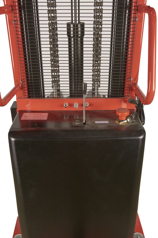 - Электрический привод подъема и спуска вил сокращает время обработки грузов за счет высокой скорости работы, в отличие от ручных штабелеров, так же это значительно снижает нагрузку на оператора