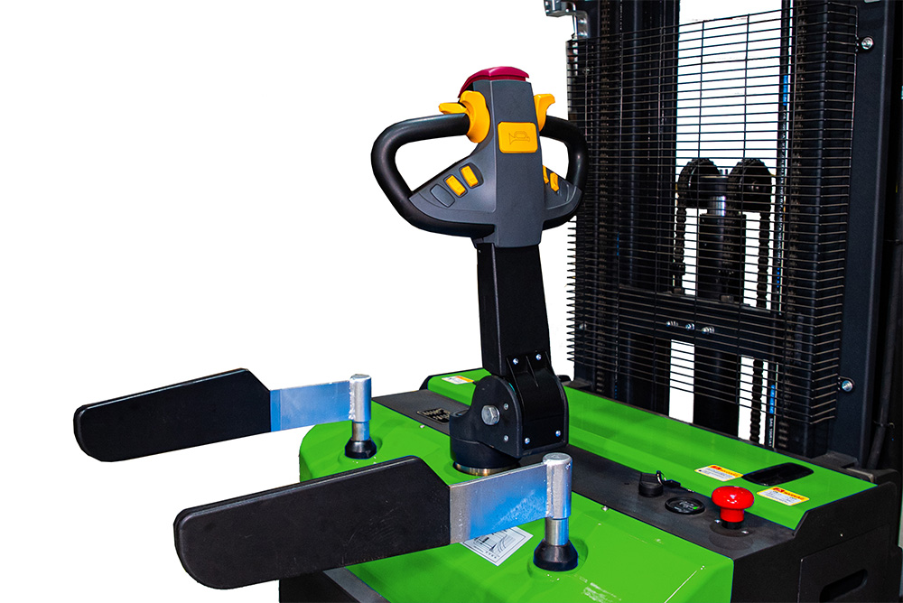 ТОР ES Li-ion высокопроизводительный самоходный штабелер c платформой для оператора, литиевым аккумулятором и электроусилителем руля.