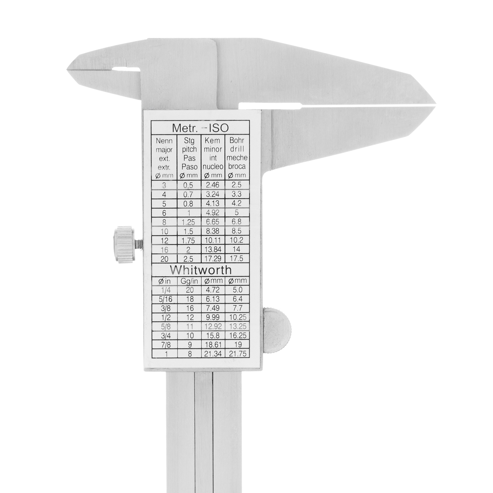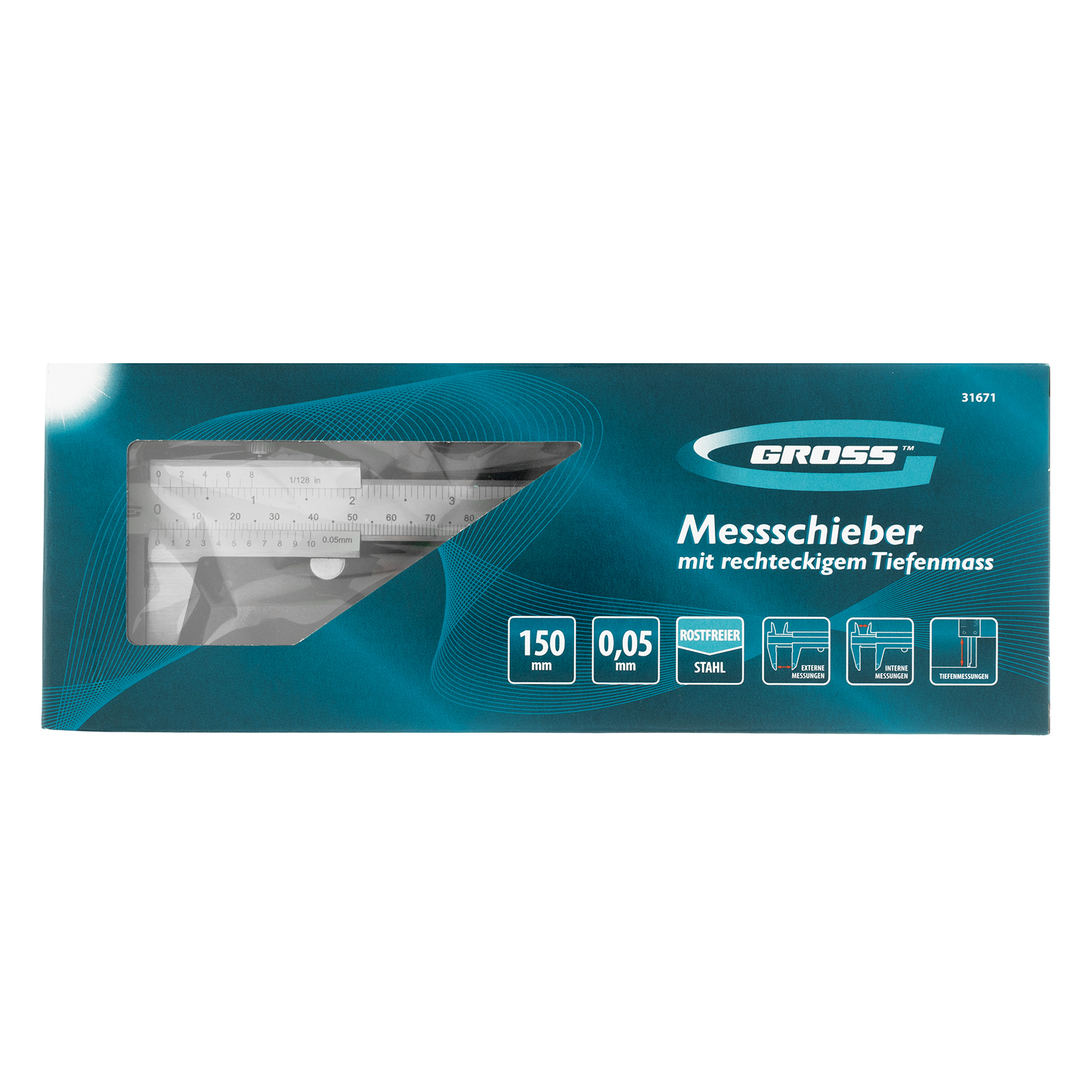 Штангенциркуль Gross 31671 из нержавеющей стали, с глубиномером, предназначен для измерения внутренних и наружных размеров деталей и заготовок в диапазоне 0-150 мм. Значение отсчета по нониусу составляет 0,05 мм. Погрешность находится в пределах ±0,02 мм при измерении до 100 мм, и ±0,03 мм — свыше 100 мм. Инструмент имеет губки двух видов для облегчения замеров внутри и снаружи предметов. Штангенциркуль будет полезен на производственном предприятии, в слесарной и столярной мастерской, автосервисе, а также пригодится в быту.
