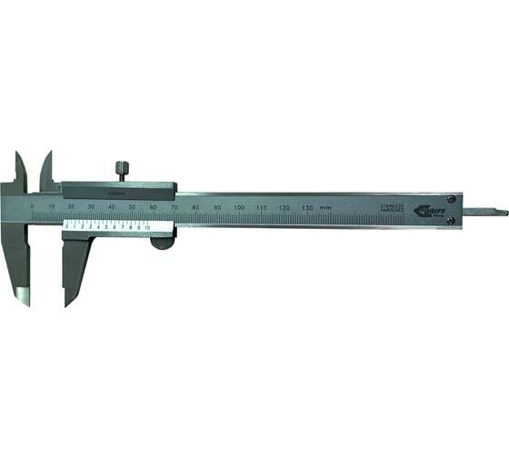 Штангенциркуль предназначен для измерения наружных и внутренних размеров, а также глубин. Оснащен глубиномером. Диапазон измерений 0-125 мм. Цена деления 0,05 мм.