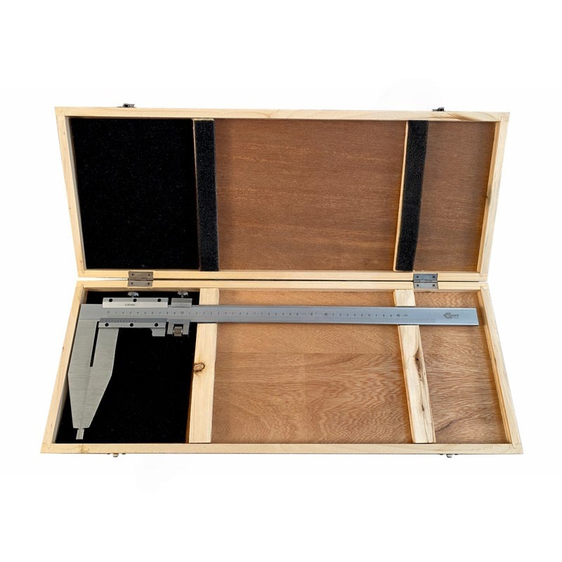 Эргономичный измерительный блок оснащен специальными выступами для удобства передвижения, а также стопорными винтами для сравнительных измерений. Инструмент изготовлен из высококачественной стали высокой прочности. Штангенциркуль оснащен устройством точной подачи рамки для удобства работы.
