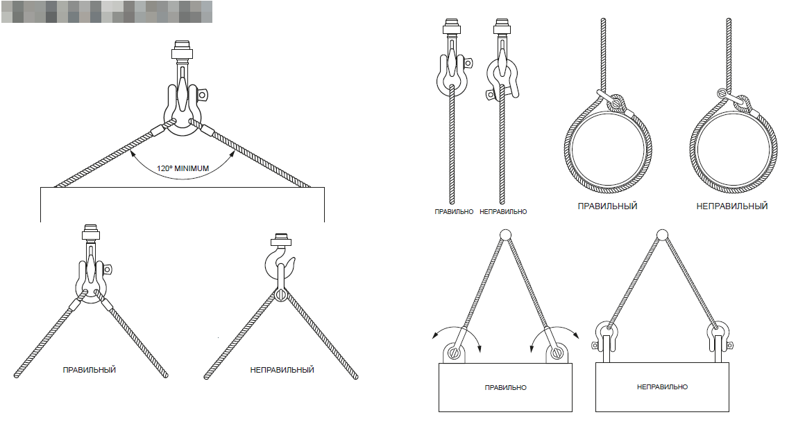 При угле 90: Допустимая нагрузка уменьшается до 50% WLL.