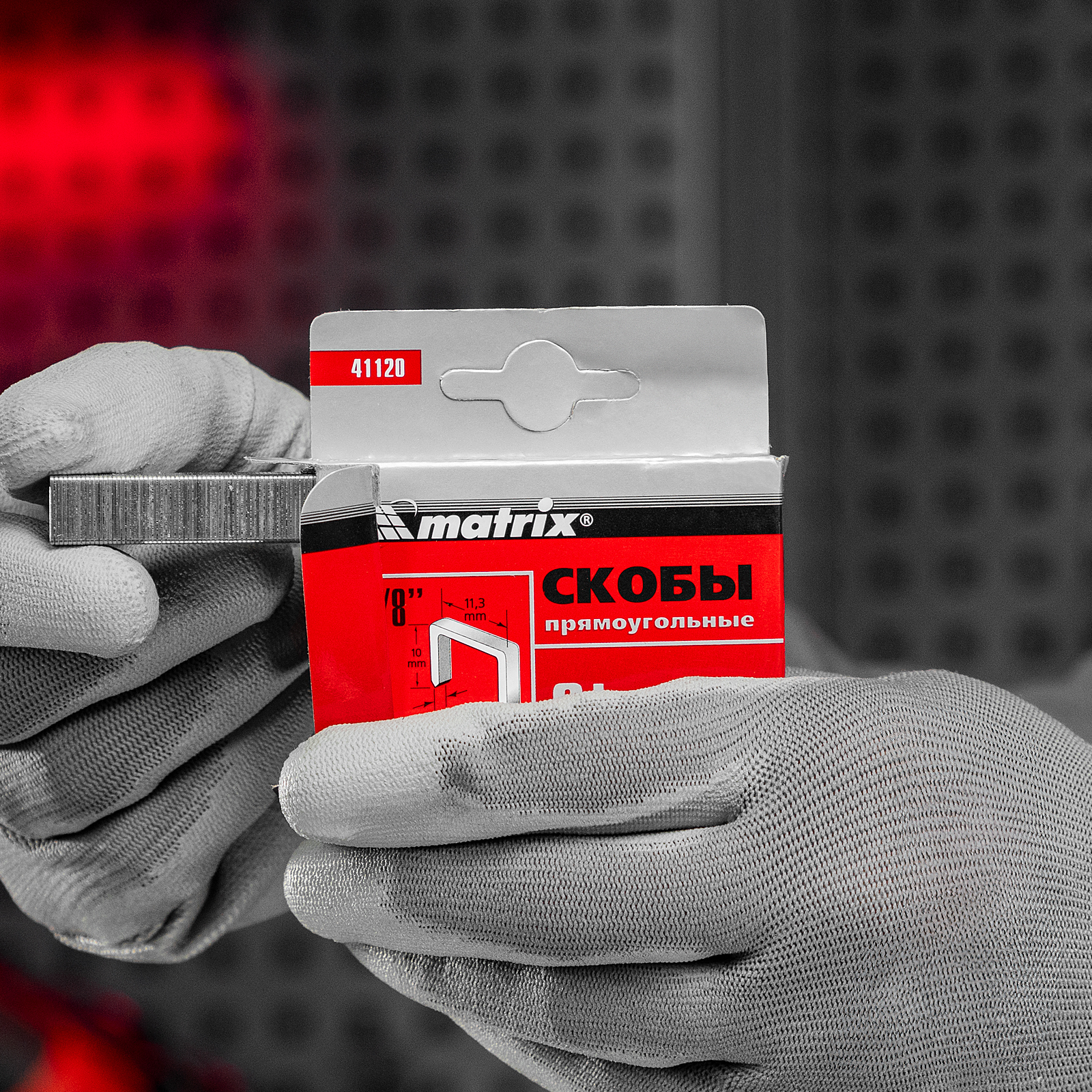 Скобы Matrix 41120 размером 10 х 11,3 х 1 мм, тип 53, 1000 шт. в упаковке, предназначены для скрепления материалов при помощи мебельного степлера. Подходят для работы с древесиной, фанерой, картоном, ДСП, оргалитом и т. д. Будут полезны во время ремонтных и отделочных работ, пригодятся для обшивки мебели.