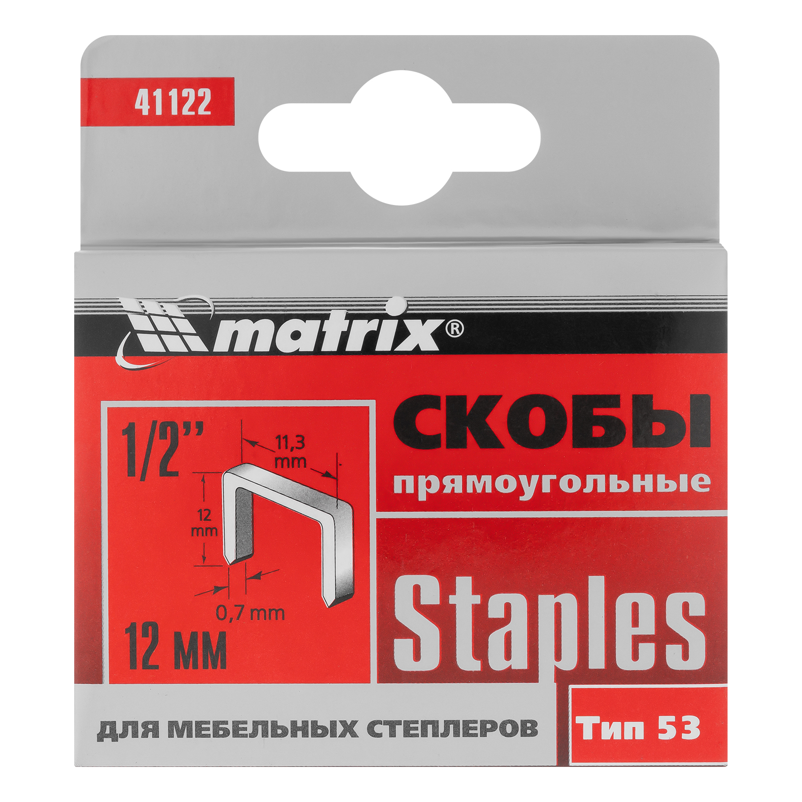 Скобы Matrix 41122 размером 12 х 11,3 х 1 мм, тип 53, 1000 шт. в упаковке, предназначены для скрепления материалов при помощи мебельного степлера. Подходят для работы с древесиной, фанерой, картоном, ДСП, оргалитом и т. д. Будут полезны во время ремонтных и отделочных работ, пригодятся для обшивки мебели.