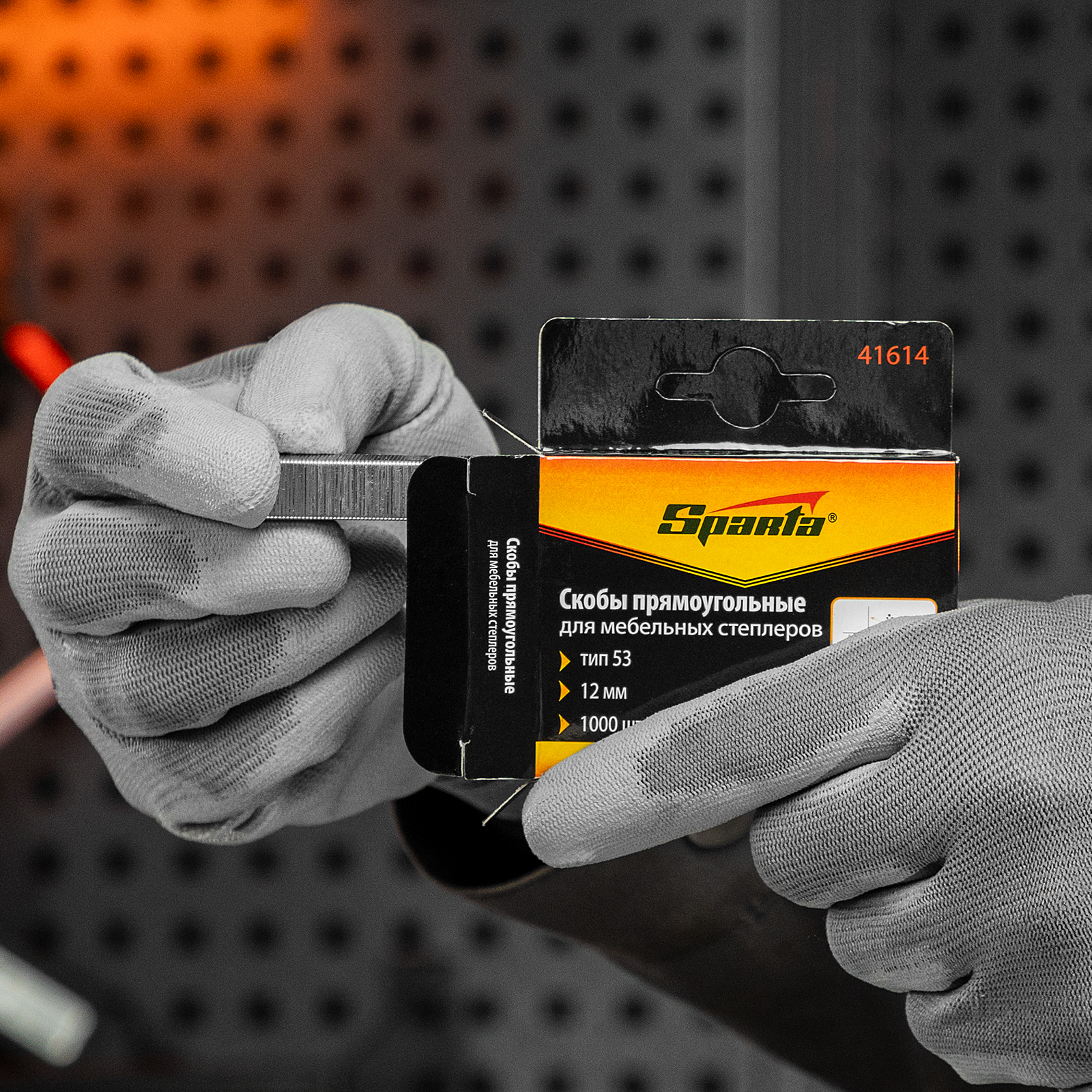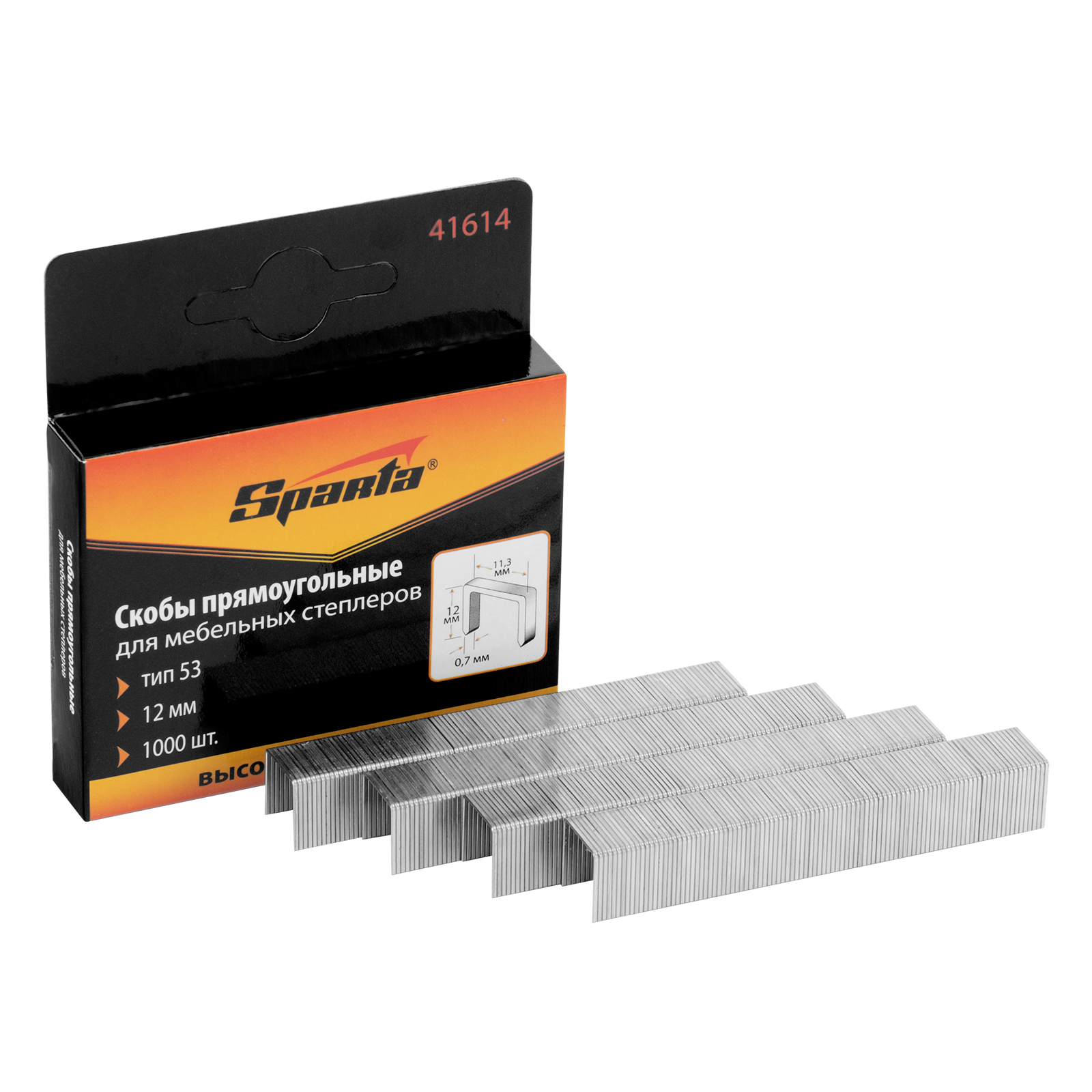 П-образные скобы Sparta 41614 типа 53, размером 12 х 11,3 х 0,7 мм, 1000 шт. в упаковке, заправляются в мебельные степлеры. Подходят для закрепления древесины, фанеры, ДСП, оргалита, картона, и других материалов. Пригодятся для проведения ремонтных и облицовочных работ, а также обивки мебели.