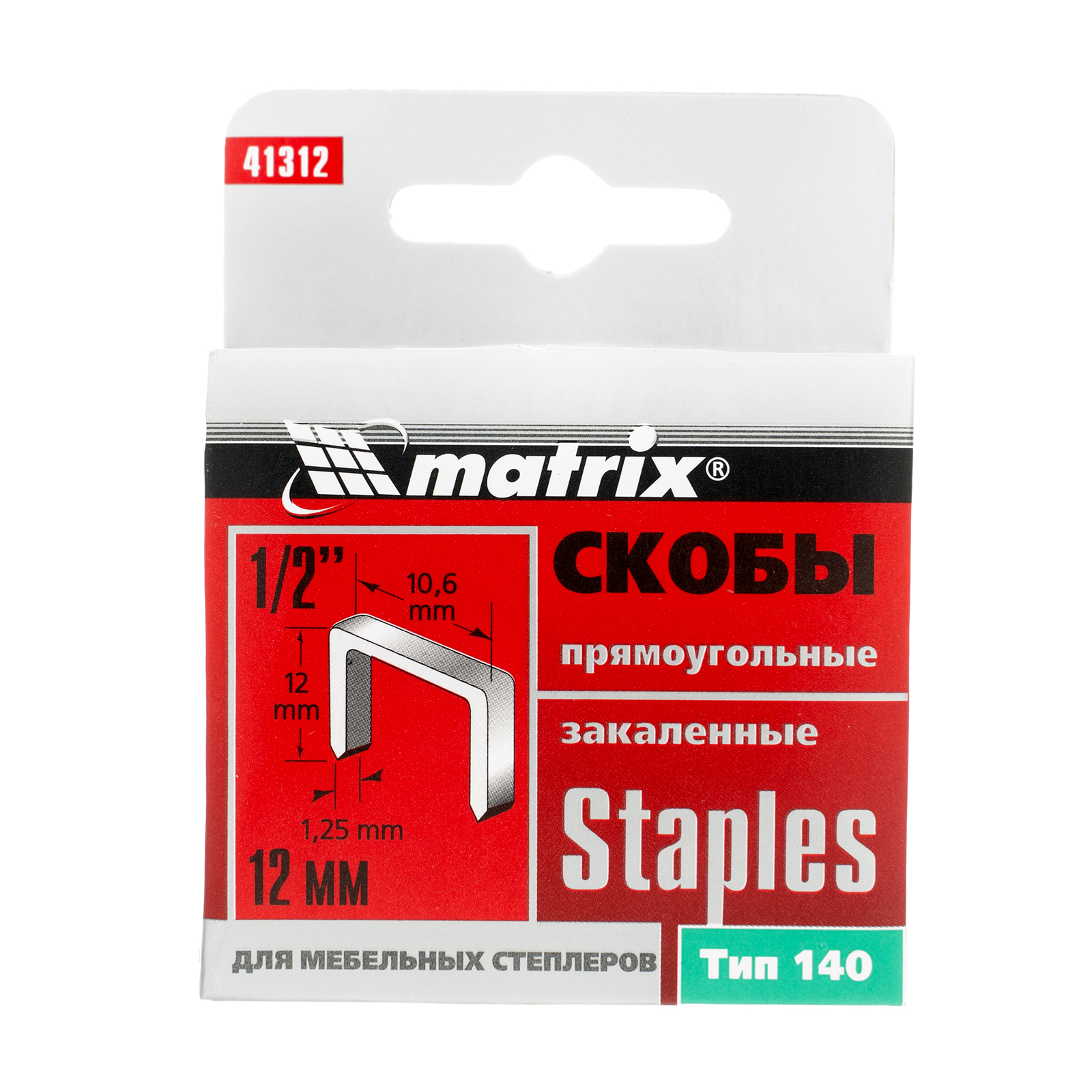 Закаленные скобы Matrix 41312 для мебельного степлера, тип 140, размером 12 х 10,6 х 1,25 мм, 1000 шт. в коробке, помогут обить мебель, зафиксировать утеплитель, а также выполнить другие отделочные и ремонтные работы. Скобы крепко соединяют различные материалы: древесину, фанеру, картон, ДСП.