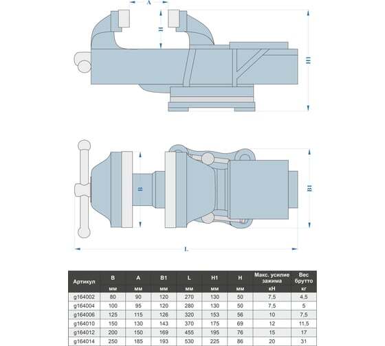 Слесарные тиски GRIFF 250 мм, поворотные, стальные, с наковальней 31кг g164014 применяются для надежной фиксации заготовки для дальнейшей ее обработки.