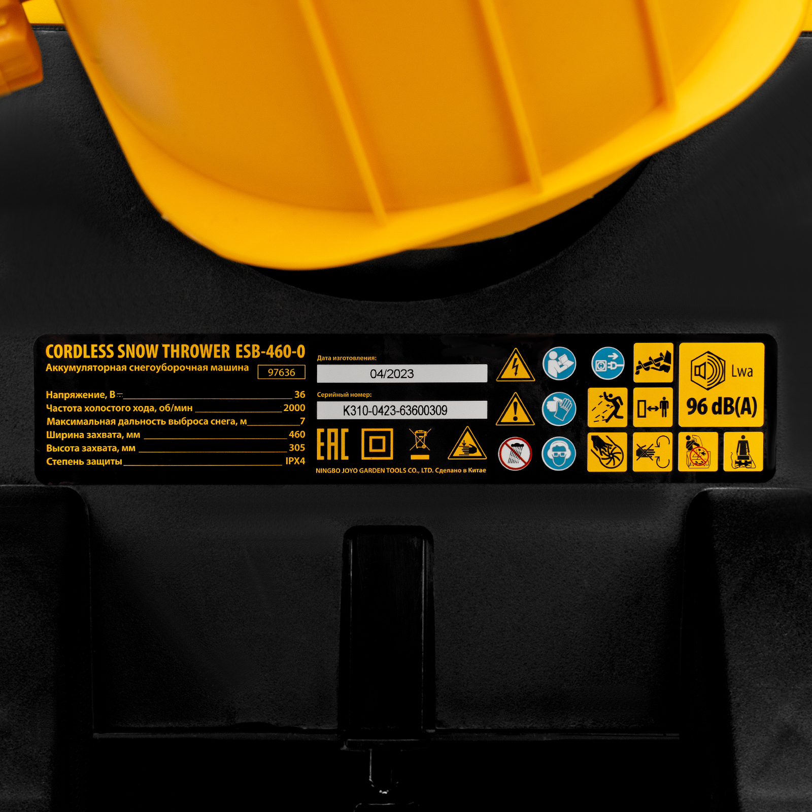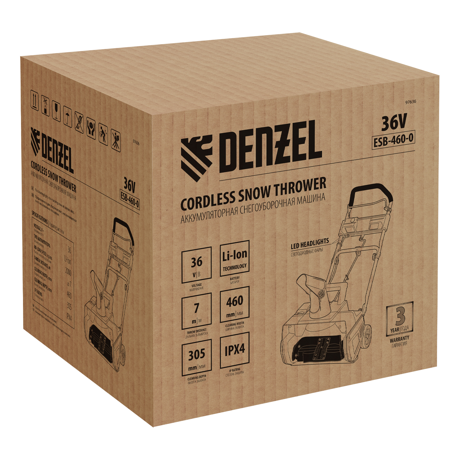 Аккумуляторная снегоуборочная машина Denzel ESB-460-0 97636 предназначена для очищения ровных поверхностей от снега, поможет расчистить дорожки, тротуары, придомовую территорию, парковку. Ширина захвата составляет 460 мм, что позволяет быстрее справляться с уборкой. Работает от 2 аккумуляторов Li-Ion с рабочим напряжением 18 В и емкостью 4 А·ч каждый.