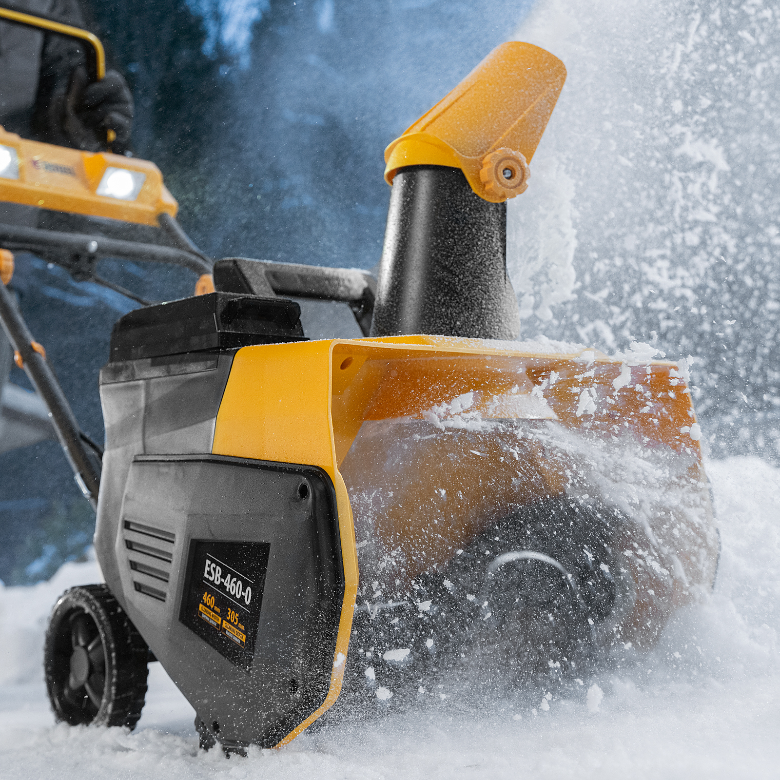 - Удобное перемещение — снегоуборщик весит всего 11 кг, благодаря чему обладает высокой маневренностью.
