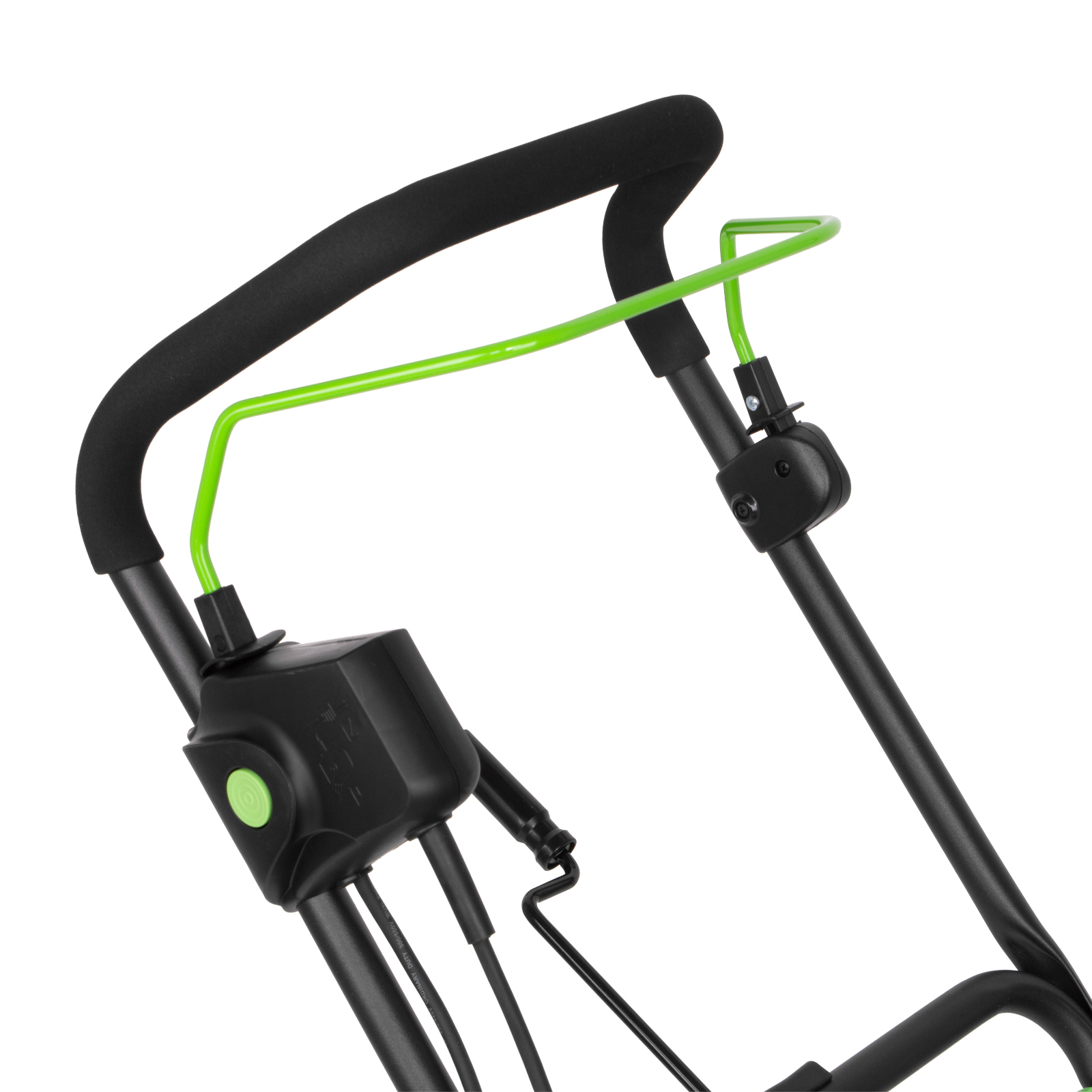 - Удобное хранение и транспортировка — благодаря складной рукоятке снегоуборщик не занимает много места.