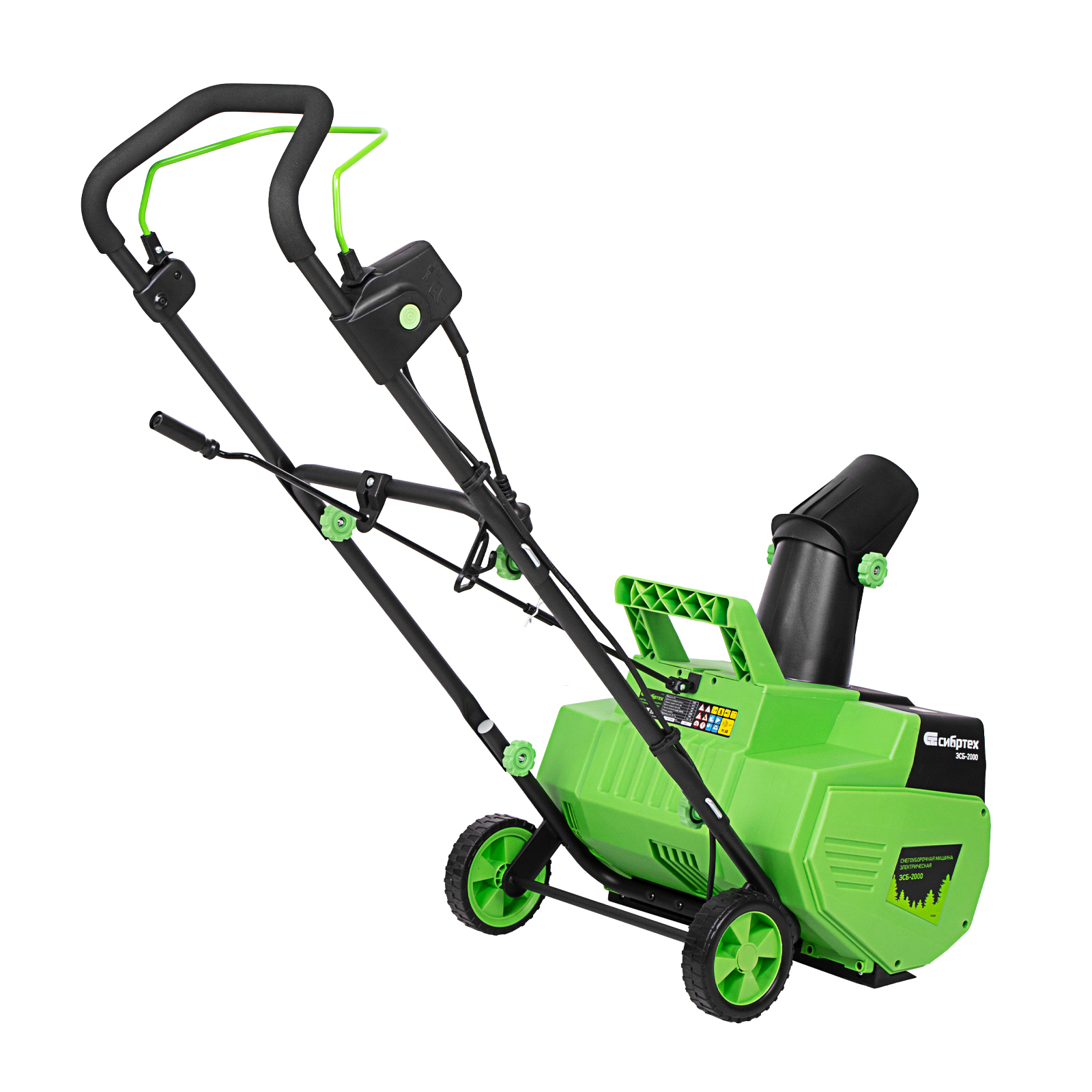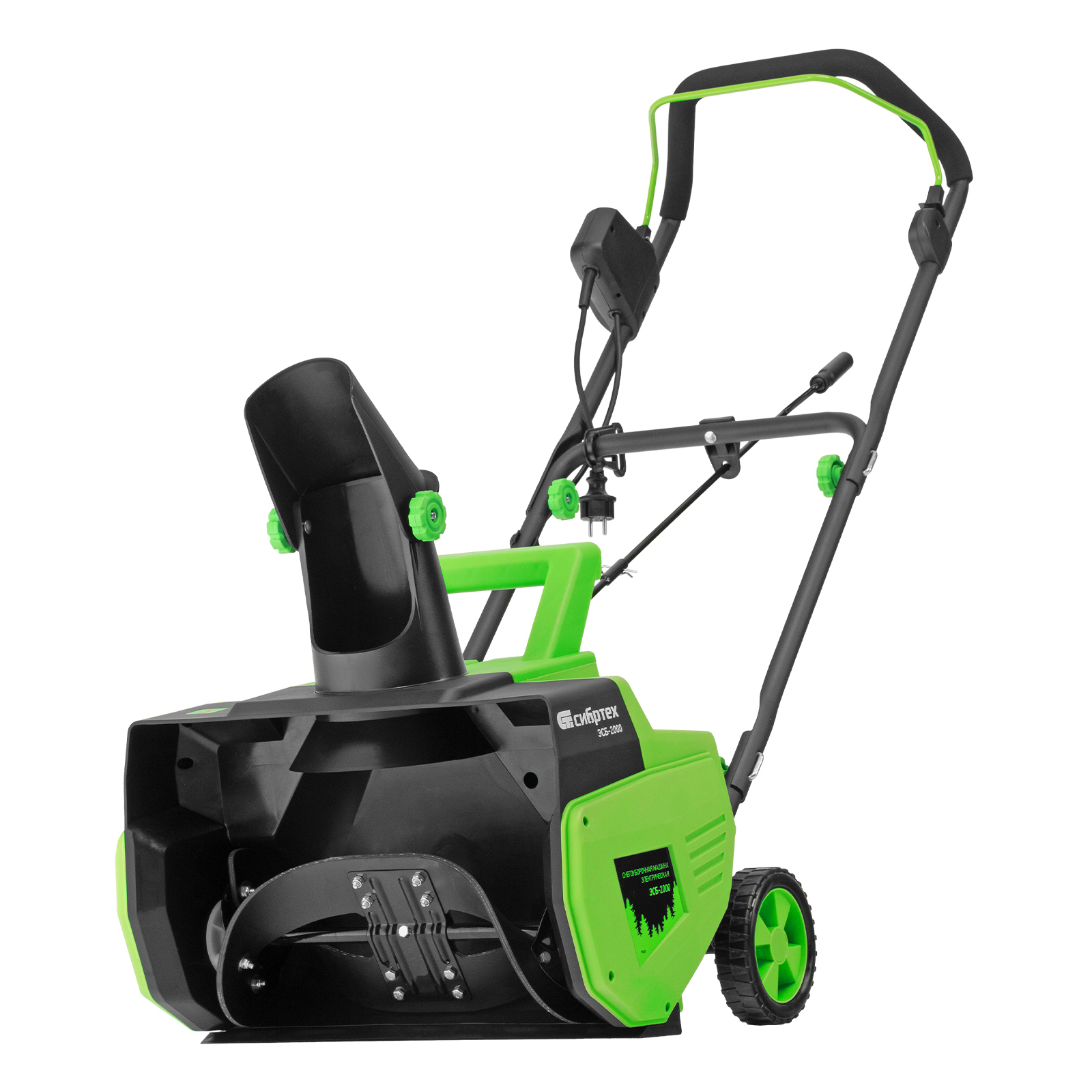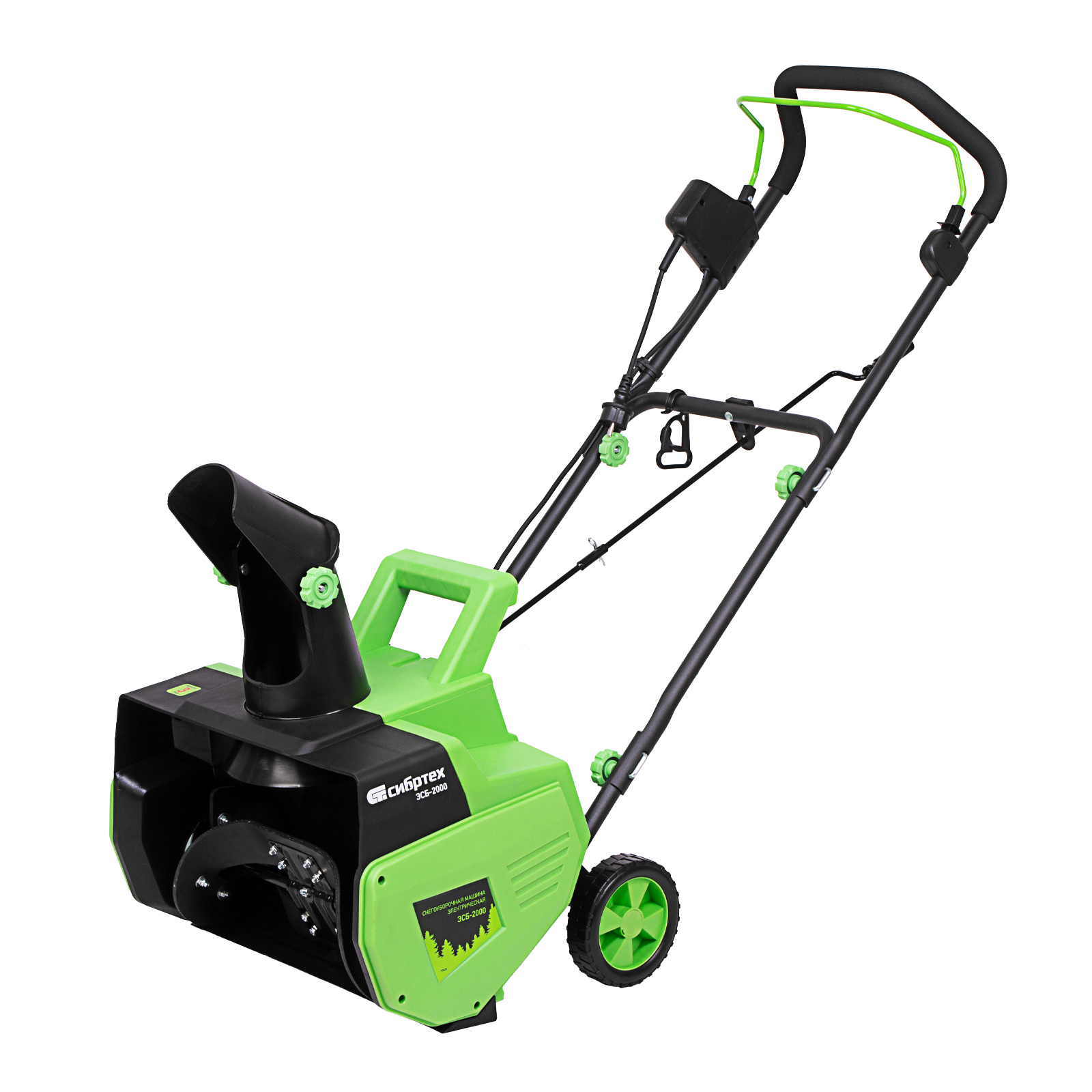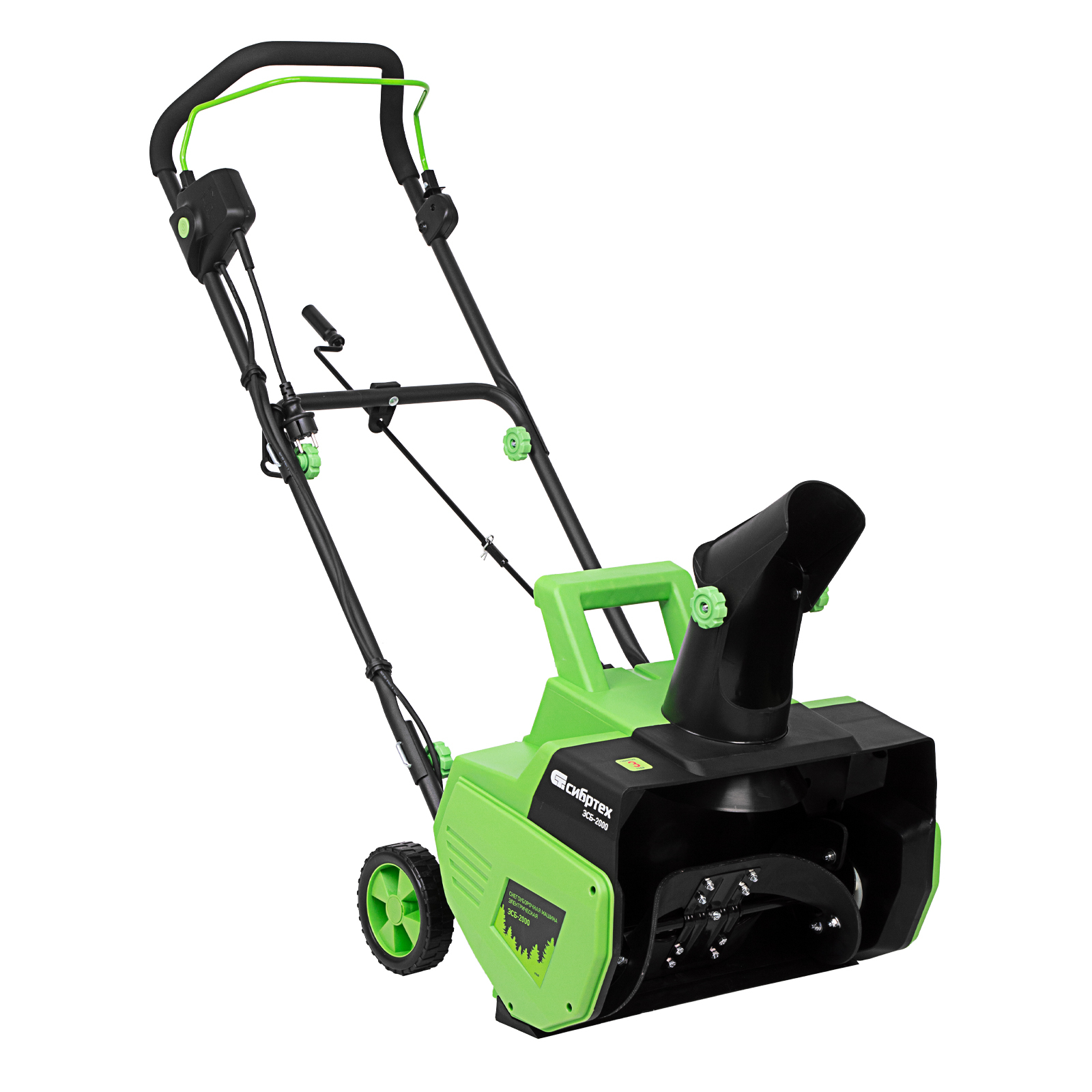 Электрическая снегоуборочная машина Сибртех ЭСБ-2000 97620 мощностью 2 кВт облегчит уборку территории после легкого снегопада. Работает от электрической сети, поэтому не производит шума и опасных выхлопов. Электродвигатель не требует сложного технического обслуживания.