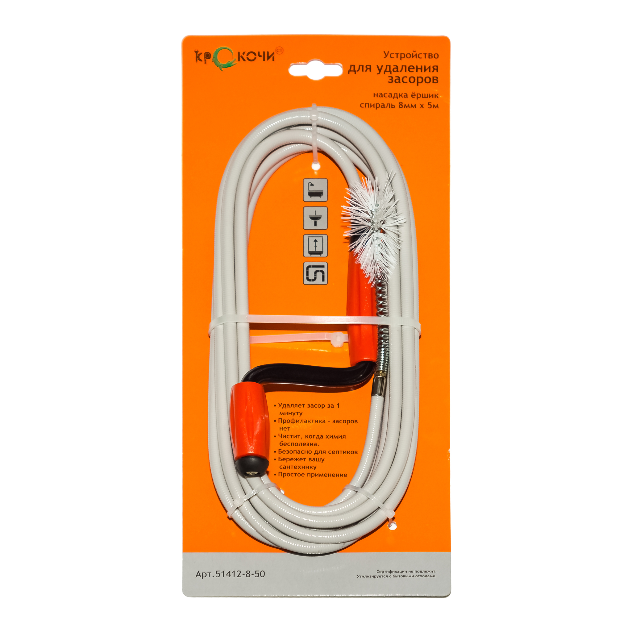 Прочистное устройство Крокочист спираль в виниловой оплетке с насадкой-ершиком и удобной рукояткой для вращения. Подходит для деликатной прочистки с бережным отношением к сантехнике. После прочистки нужно всего лишь протереть оплетку влажной тряпкой.