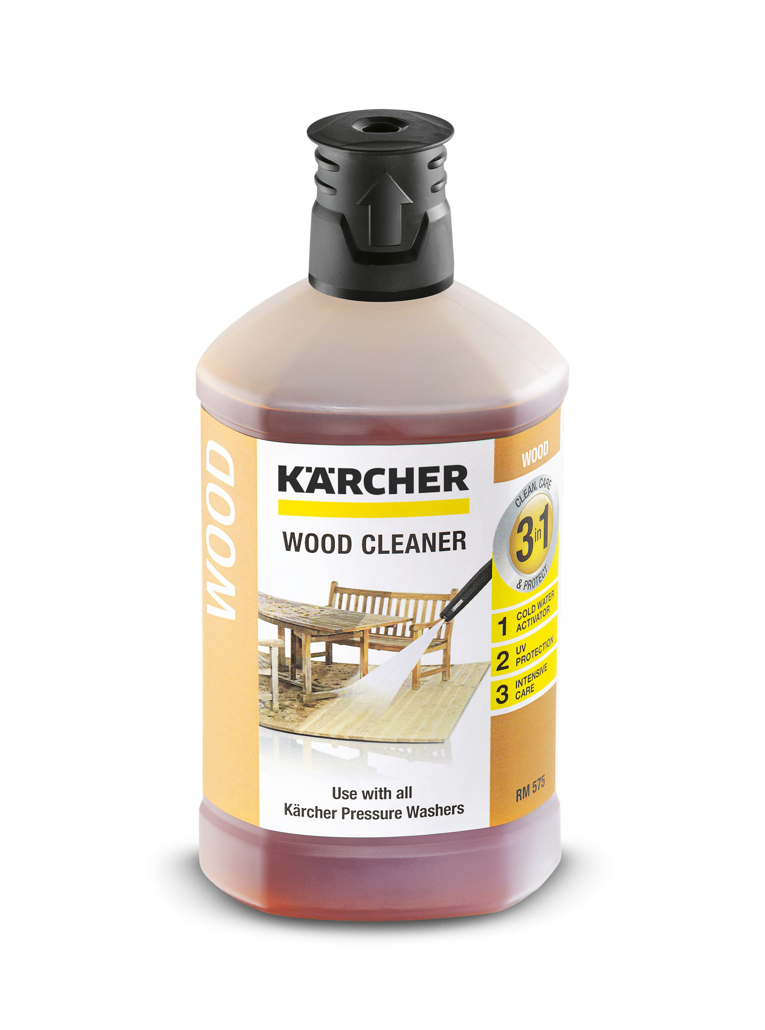 Готовое к применению интенсивное средство для чистки древесины с уникальной формулой «3 в 1», включающей не только активный очищающий компонент, но и компоненты для интенсивного ухода и защиты от УФ-излучения. Гарантирует одновременные очистку, уход и защиту. Подходит для очистки любых обработанных и необработанных деревянных поверхностей на открытом воздухе с помощью аппаратов высокого давления Karcher, в том числе и с системой Plug'n'Clean.