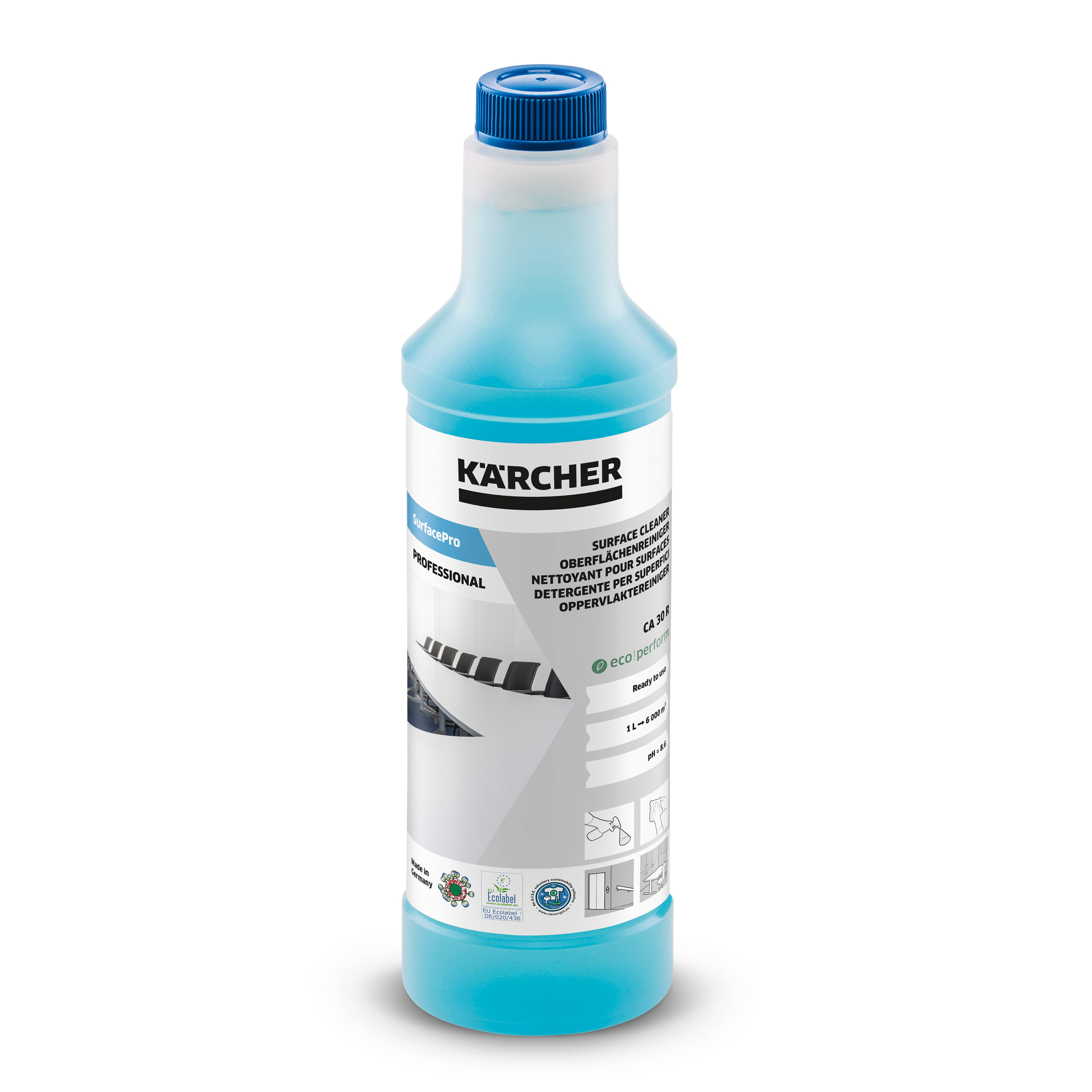 Универсальное, готовое к применению средство Karcher SurfacePro CA 30 R eco!perform превосходно очищает любые водостойкие и устойчивые к спиртам поверхности, также пищевые и жировые загрязнения, следы никотина, пятна от кофе или обувного крема, следы хождения, штрихи шариковых ручек с блестящих поверхностей, в т. ч. с нержавеющей стали. Быстро высыхает без образования разводов. pH: 8,6 (концентрат).
