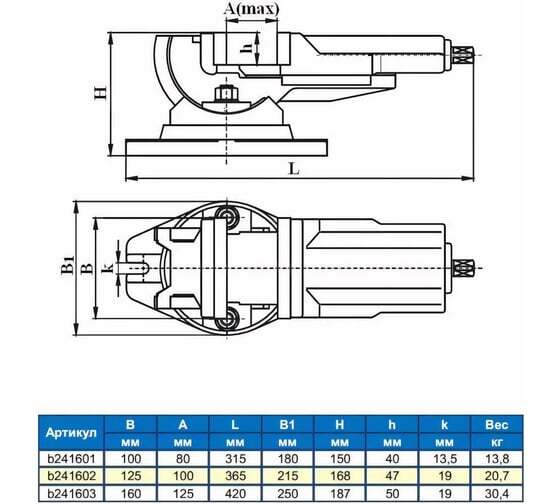 Станочные тиски GRIFF глобусные 160мм, Amax-125мм, вес-30.4кг, поворотные, серия QHK b241603 имеют функцию поворота на 90 градусов в вертикальной плоскости и на 360 градусов в горизонтальной. Класс точности - П.