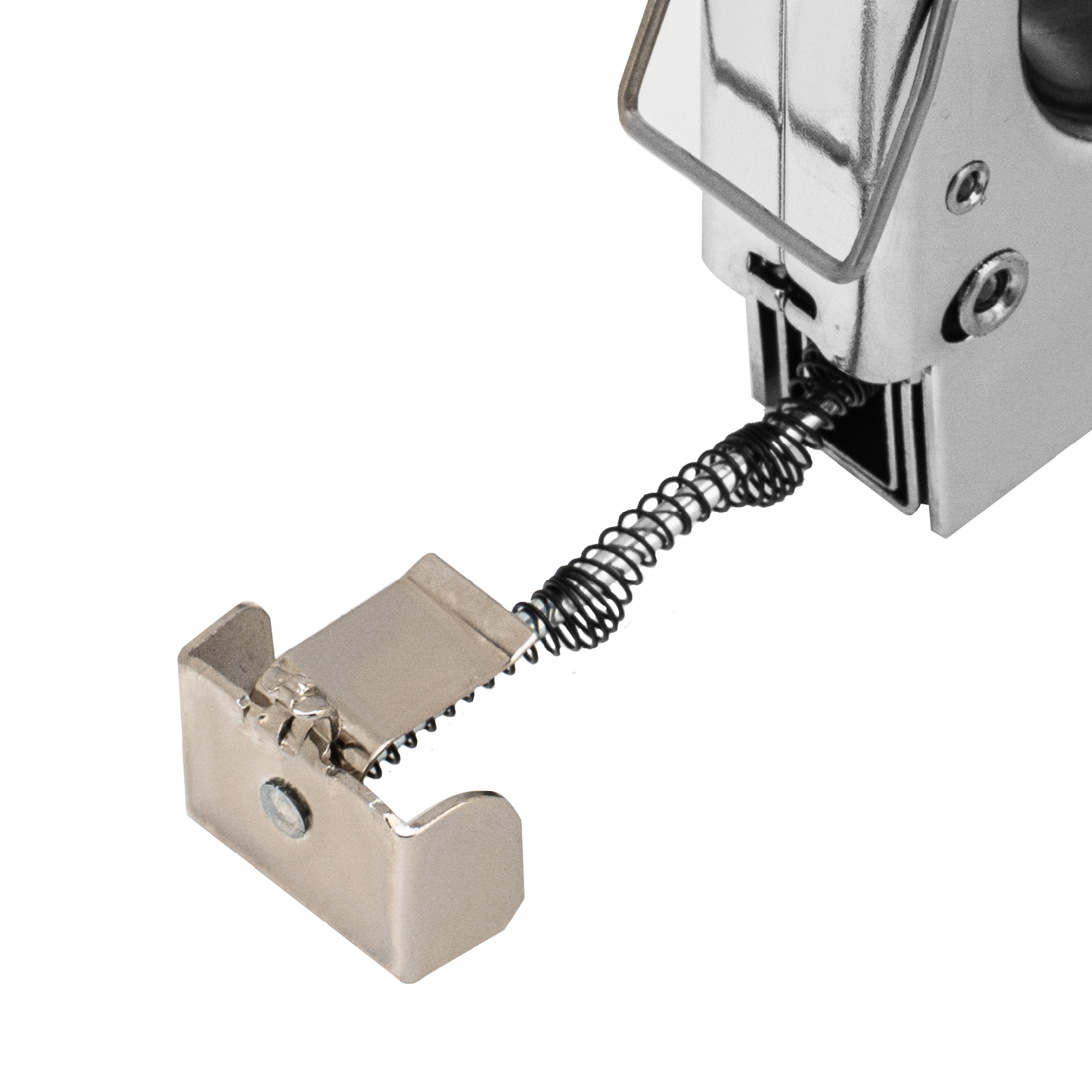 - Безопасное хранение и транспортировка — накидная скоба фиксирует рукоятку, предотвращая случайное срабатывание степлера.