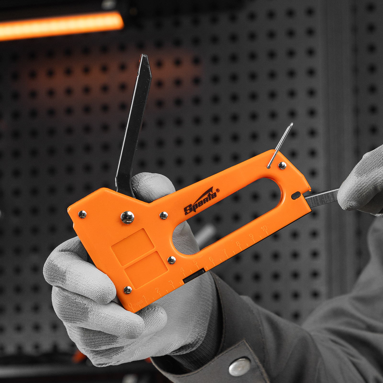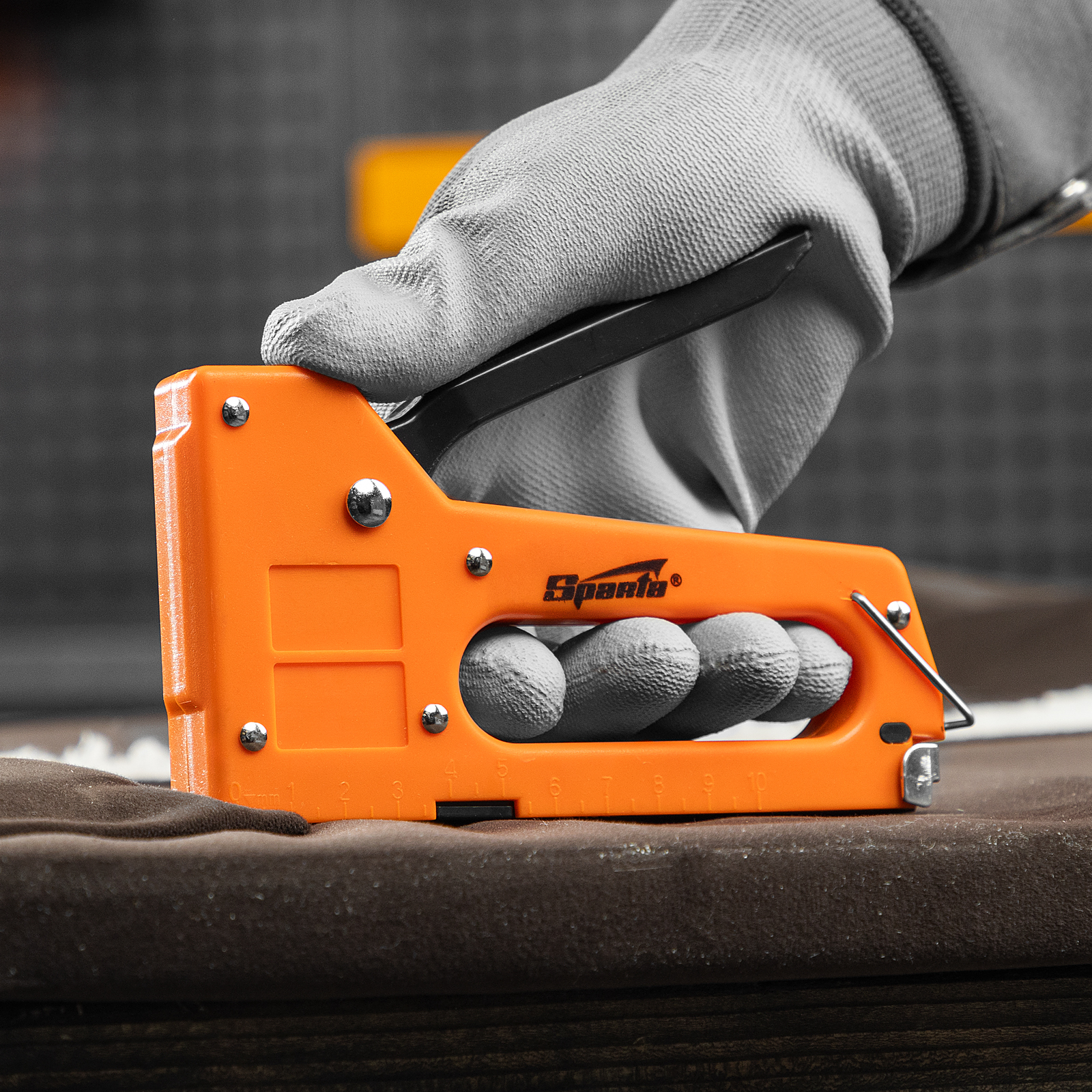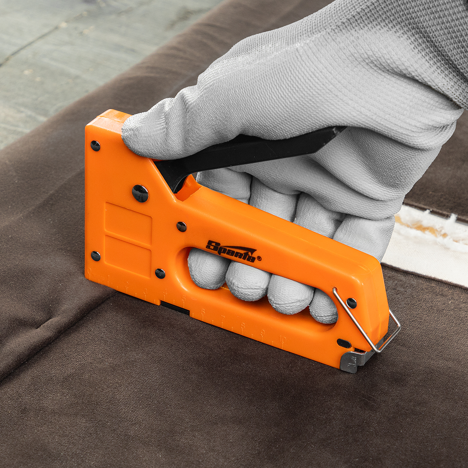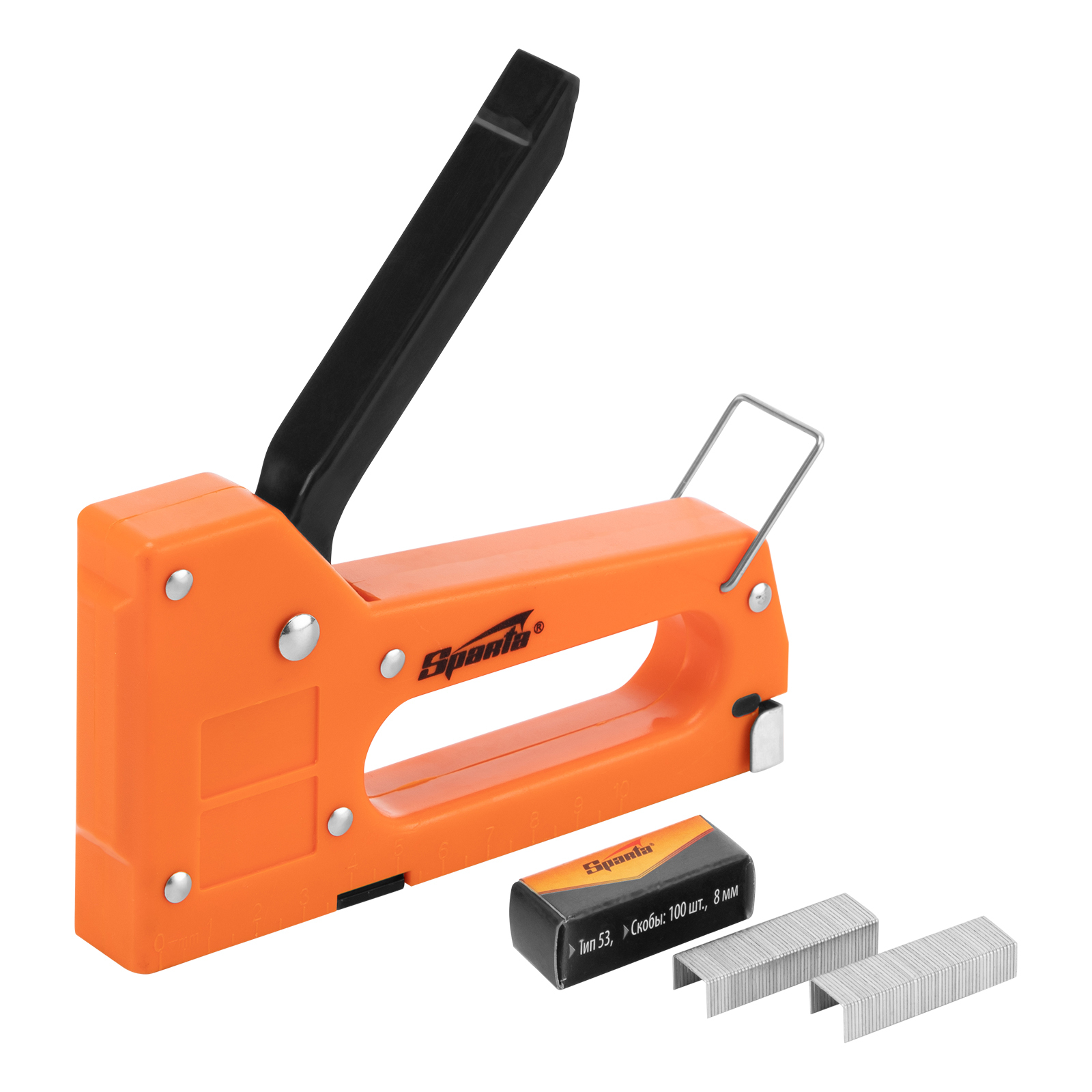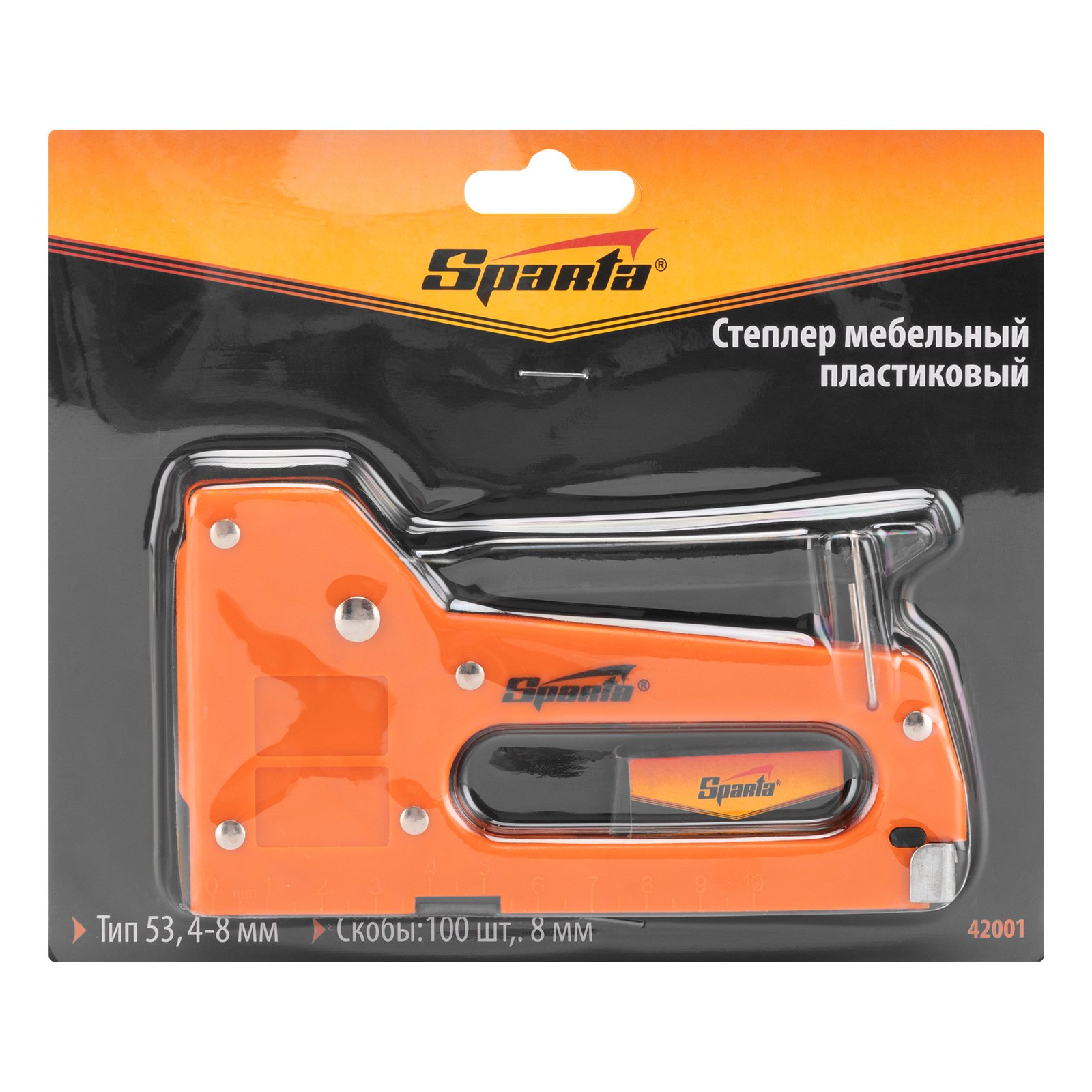 Пластиковый мебельный степлер Sparta 42001 совместим с крепежом типа 53 размером 4-8 мм и поставляется со скобами в количестве 100 шт. Используется для быстрого скрепления с деревянным основанием фанеры, оргалита, ДСП, ДВП, пленки, утеплителя и других листовых материалов. Будет полезен во время сборки шкафов, обивки мягкой мебели, а также выполнения теплоизоляционных и других крепежных работ.