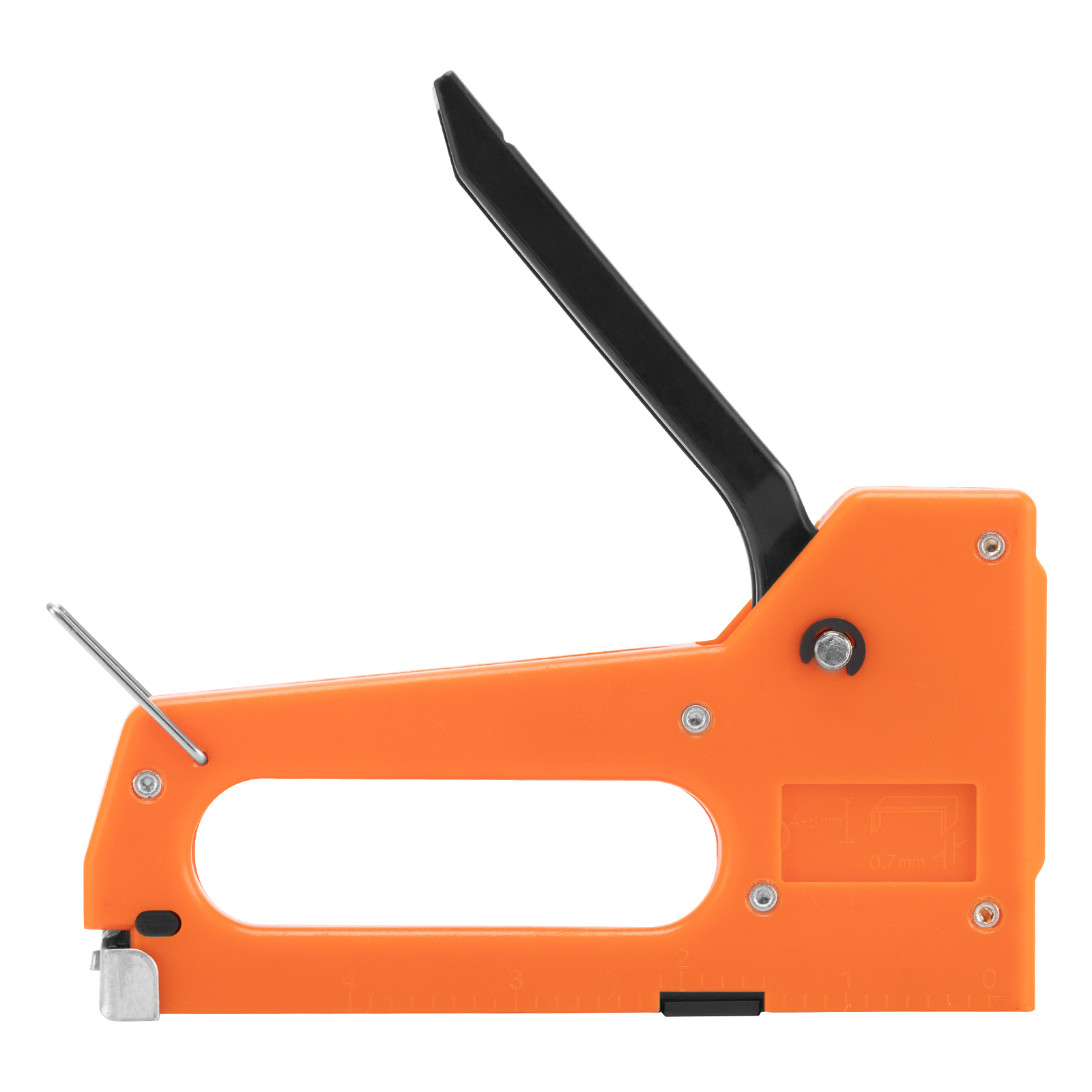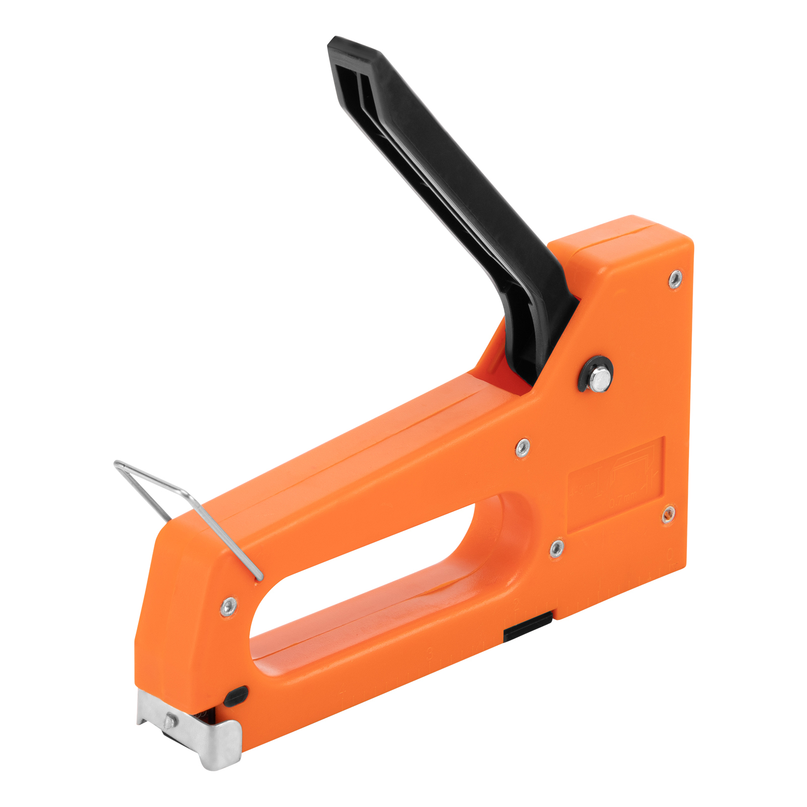 - Безопасное хранение и транспортировка — металлическая скоба-фиксатор удерживает рукоятку в нерабочем положении, предотвращая самопроизвольное срабатывание ударного механизма.