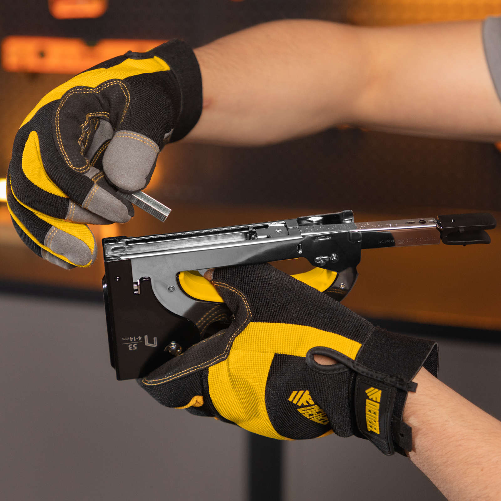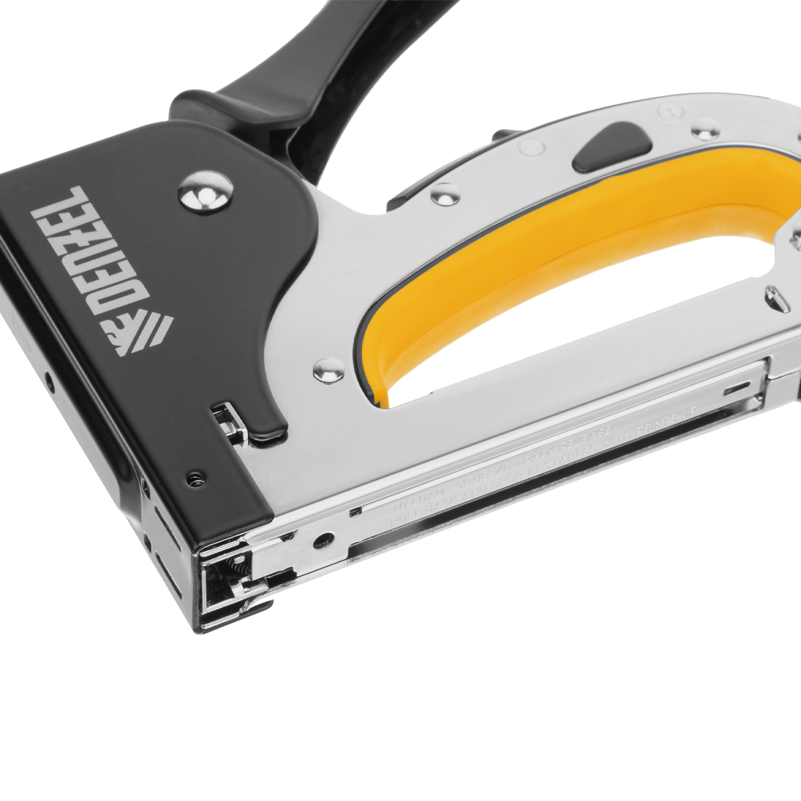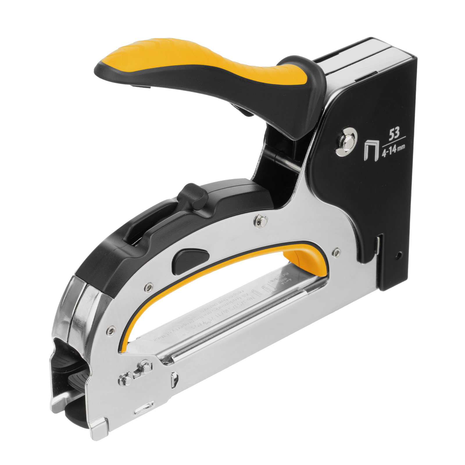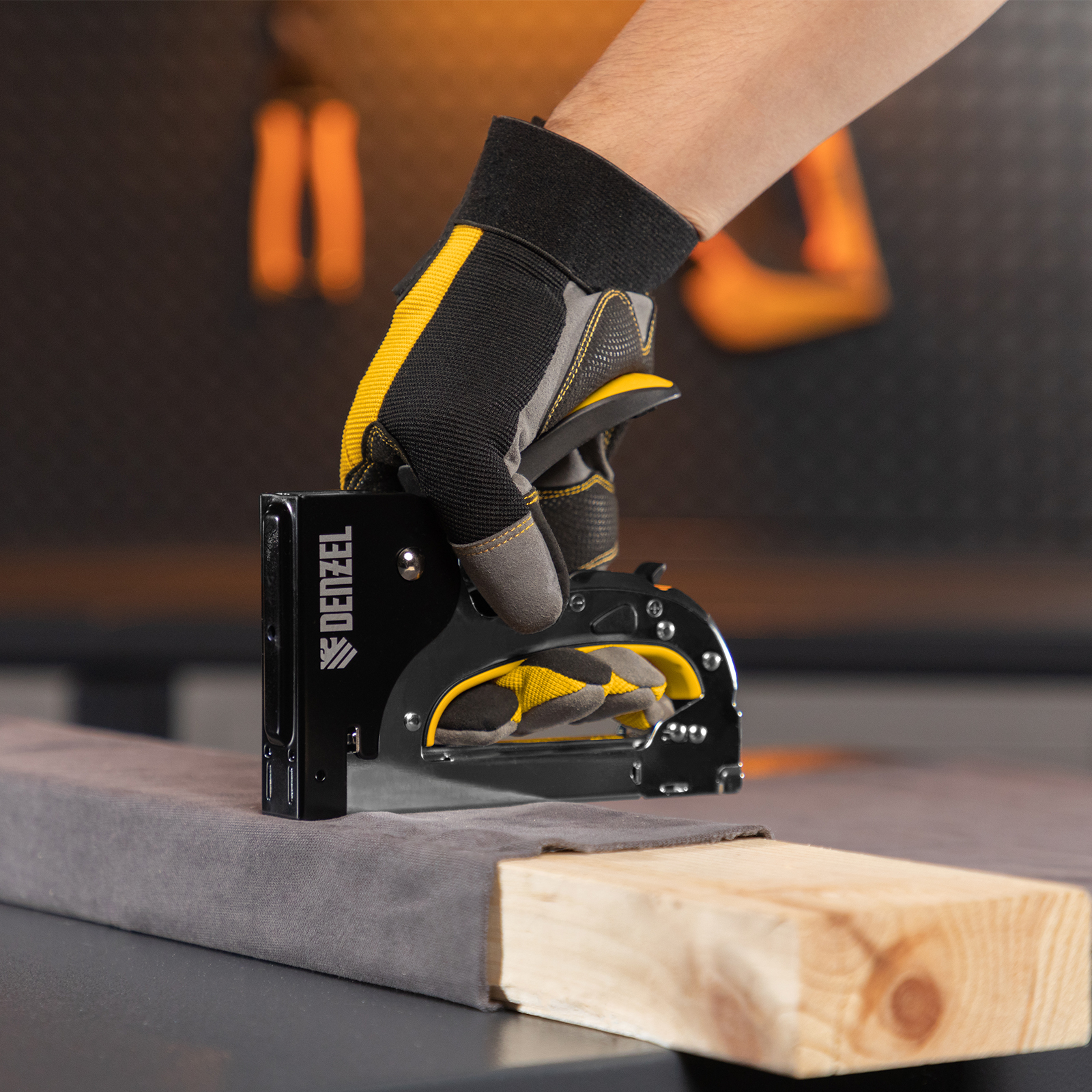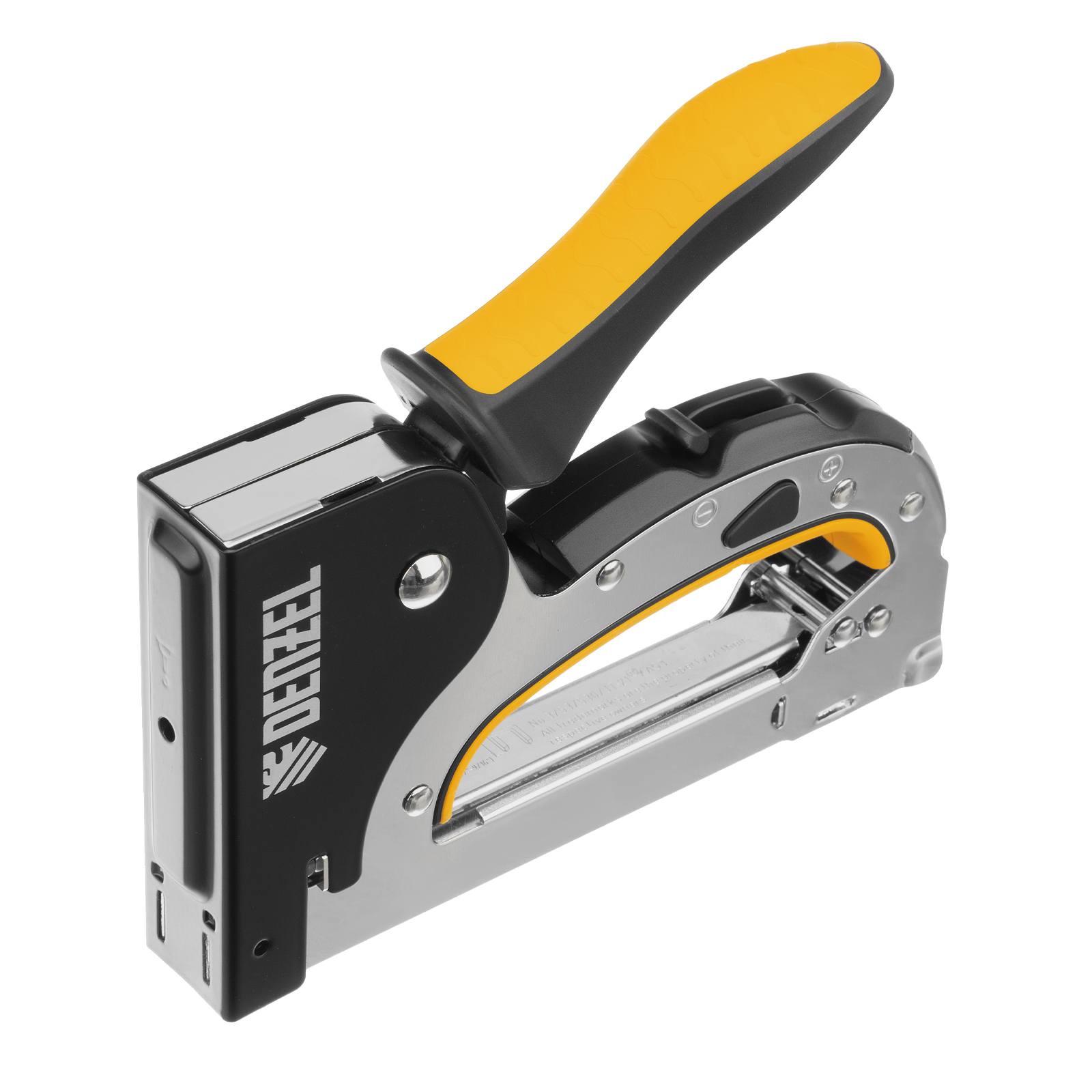 Мебельный степлер Denzel 40211 со стальным корпусом, регулировкой силы удара и функцией быстрой загрузки работает со скобами типа 53 размером 4-14 мм. Используется для фиксации на деревянном основании фанеры, ДВП, оргалита, ткани, утеплителя. Силу удара можно регулировать в зависимости от толщины материала, что обеспечивает высокое качество работ. Степлер будет полезен для обивки мебели, пригодится во время ремонта.