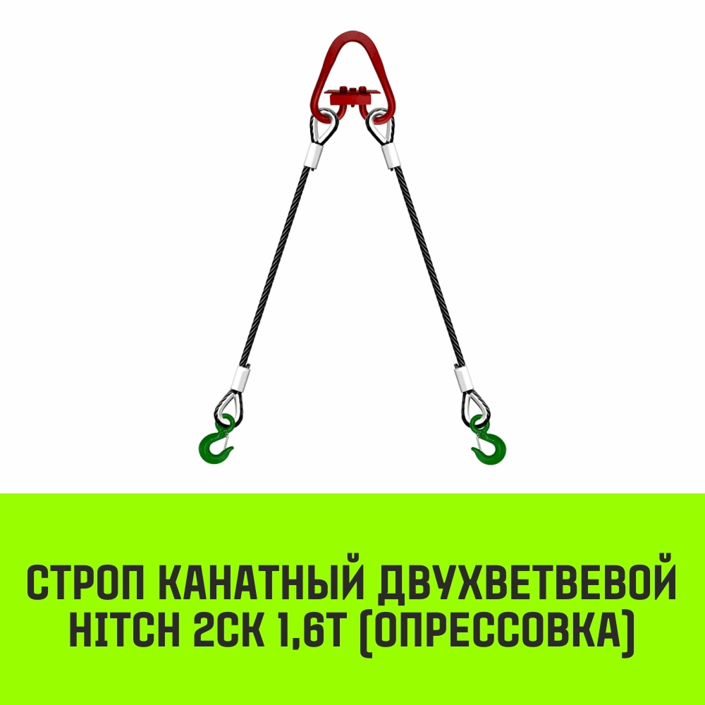2 СК Опрессовка – грузоподъемное оборудование из двух соединенных стальных канатов с сердечником. Ветви стропа фиксируются овальным или треугольным звеном. Конструкция имеет чалочный крюк КЧ1 с одной стороны и коуш с петлей – с другой. Концы тросов опрессованы алюминиевыми втулками.
