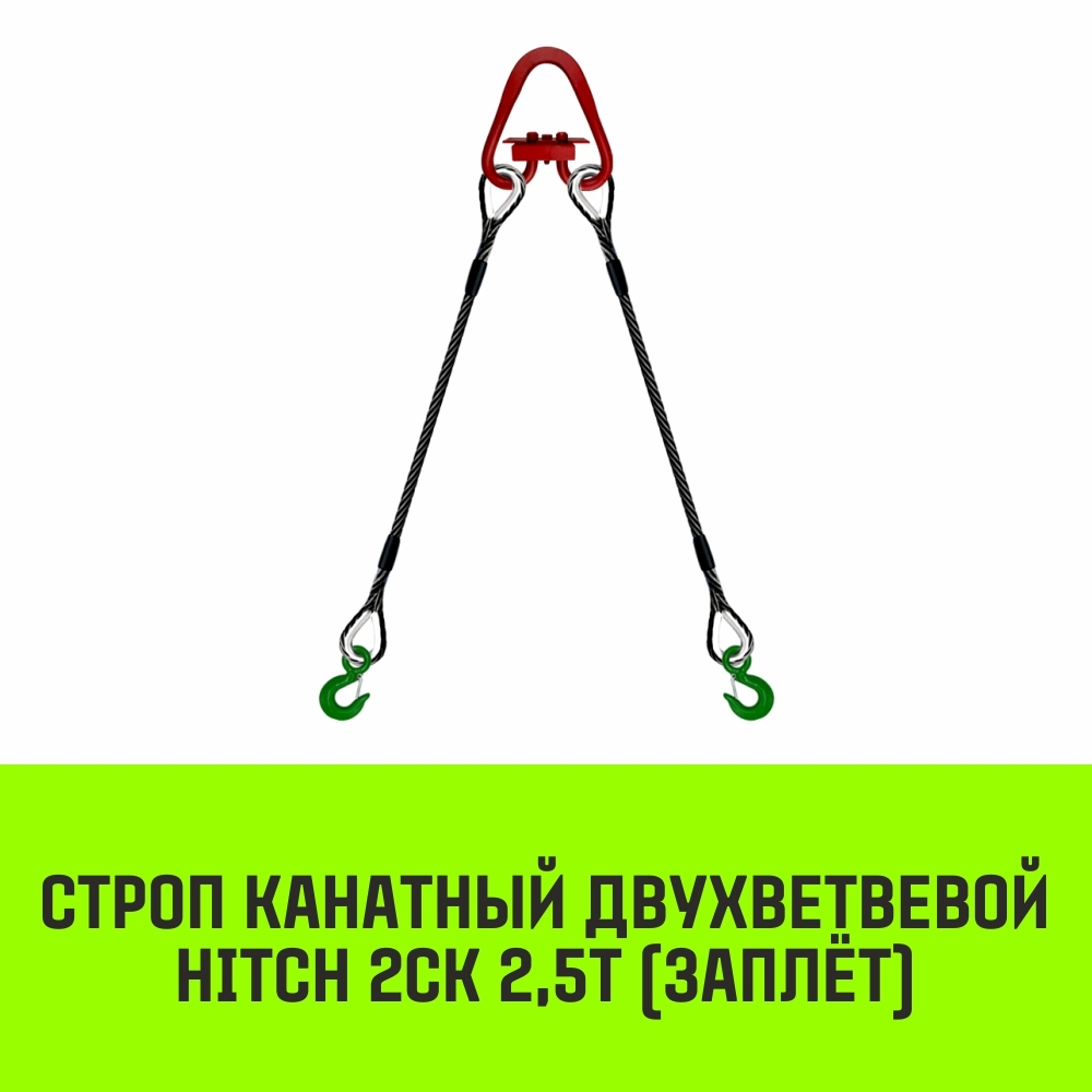 2СК Заплет – два прочных каната, соединенных звеном (овальным неразъемным или треугольным разъемным) для зацепки тяжелых грузов за две точки. На одном конце оборудования закреплен чалочный крюк, на другом – коуш и петля. Переплетенные пряди каната обеспечивают прочное соединение. При этом, чем тяжелее груз, тем выше разрывное усилие стропа за счет еще более сильного контакта проволоки.