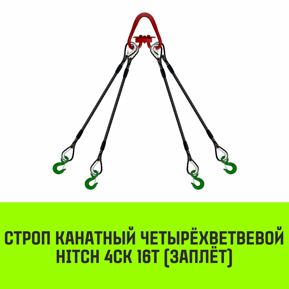 Четырехветвевой канатный строп, так называемый «паук», изготовлен из стальных канатов крестовой двойной свивки с органическим или стальным сердечником. Ветви стропа оборудованы коушем с петлей на одном конце и чалочным крюком – на другом. Заплет создает своего рода бандаж, обеспечивающий переход от заплетенного участка до рабочего диаметра каната. Особенности заплета в том, что высокая нагрузка на петлю увеличивает разрывное усилие тросов.