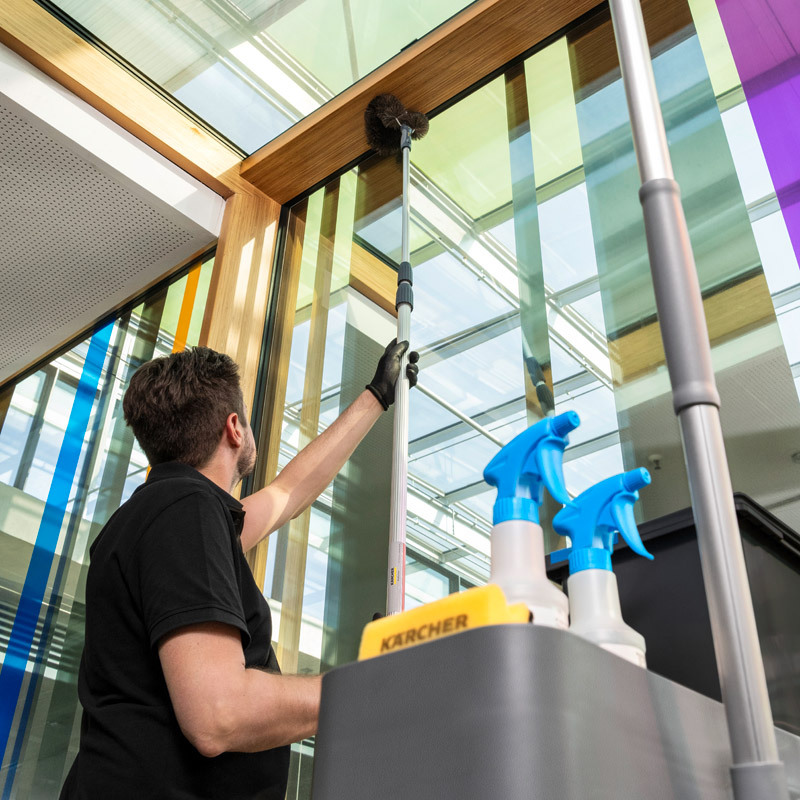 Двухсекционная телескопическая ручка Karcher (2x200 см) позволяет безопасно очищать высоко расположенные поверхности без лестниц и стремянок. Применяется с держателями шубок и скребками для мытья окон. Лёгкая, надёжная ручка изготовлена из высококачественного алюминия и пластика.