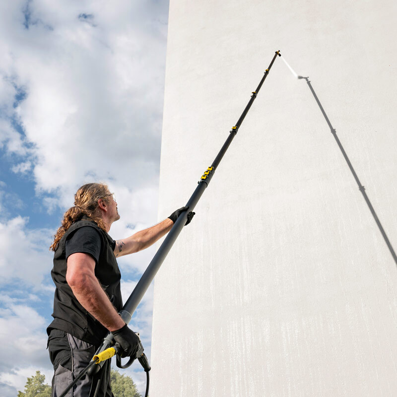 Многоцелевая телескопическая штанга Karcher TL 7 F с максимальным радиусом действия 7 м из прочного стекловолокна используется для мойки окон, фасадов и солнечных батарей при помощи щеток. Фактически это одна штанга для решения множества задач: очистки под высоким давлением, средним давлением, осмотической водой или с использованием пылесоса.