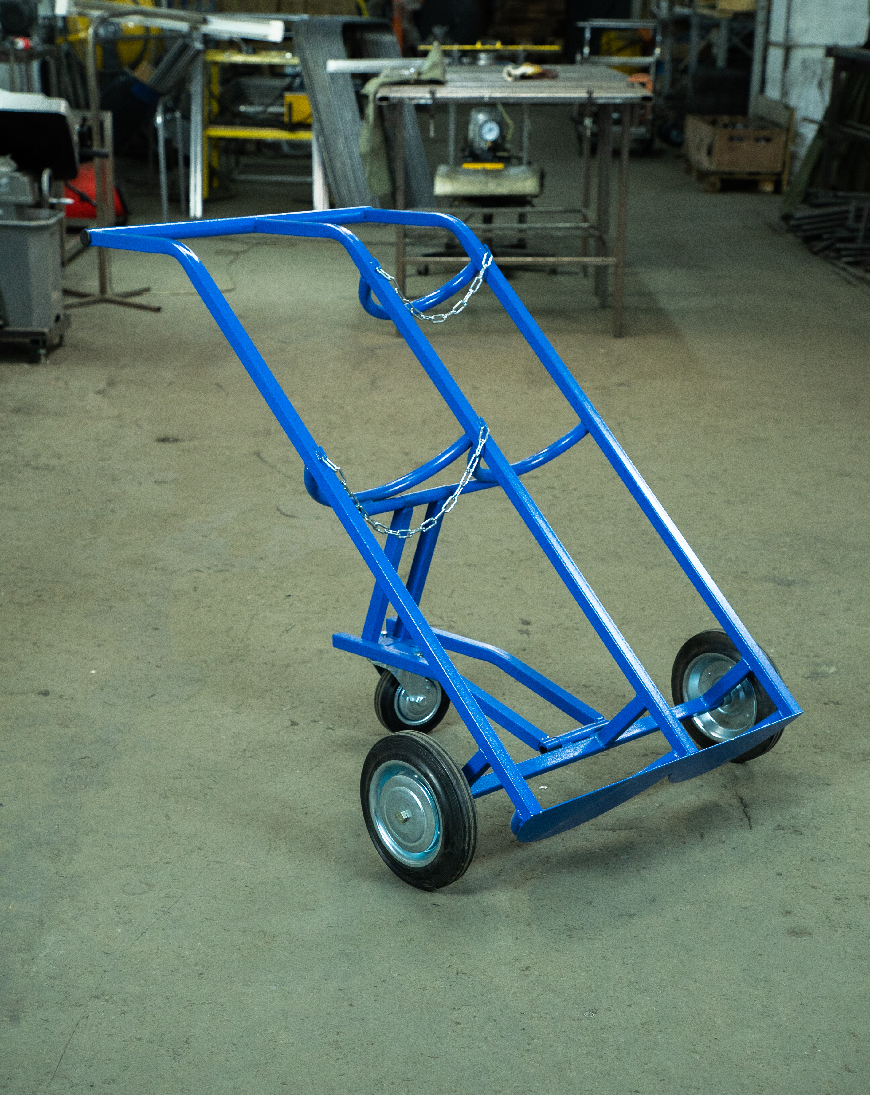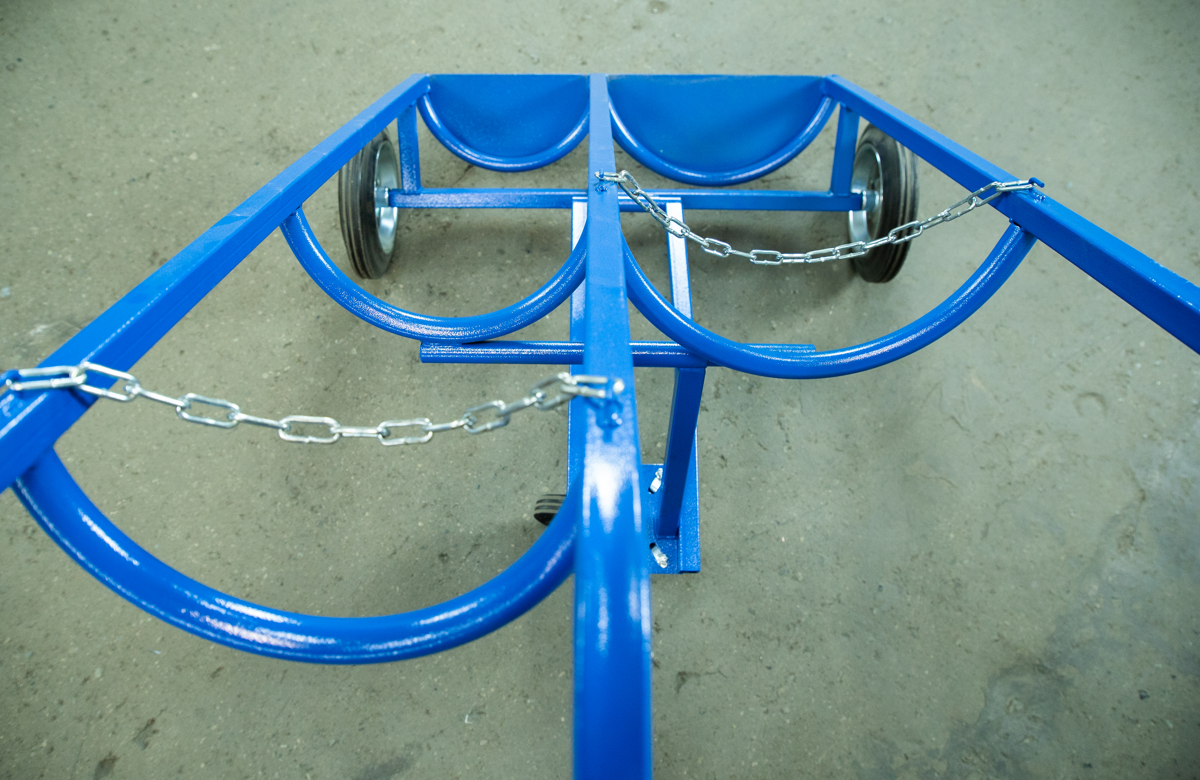 Тележка грузовая TOR ТГК-П используется для одновременной перевозки 2 баллонов (кислород, пропан) объемом 40л и 50л.