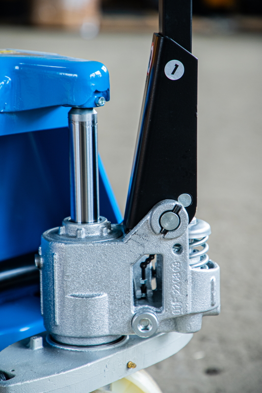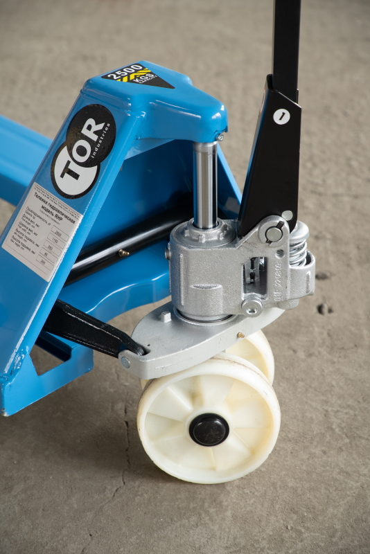 Тележка гидравлическая TOR RHP - премиальная модель с разборным гидроузлом, укрепленными вилами для интенсивной работы на складах с высоким товарооборотом.