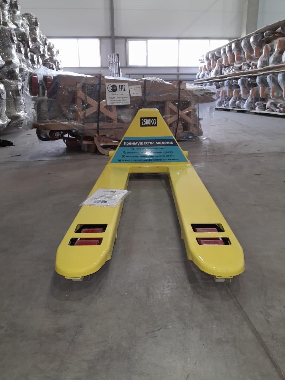 Тележка гидравлическая TOR AC(J) грузоподъемностью 2500кг применяется для погрузочно-разгрузочных работ и перевозки паллетированных грузов весом до 2.5 т.