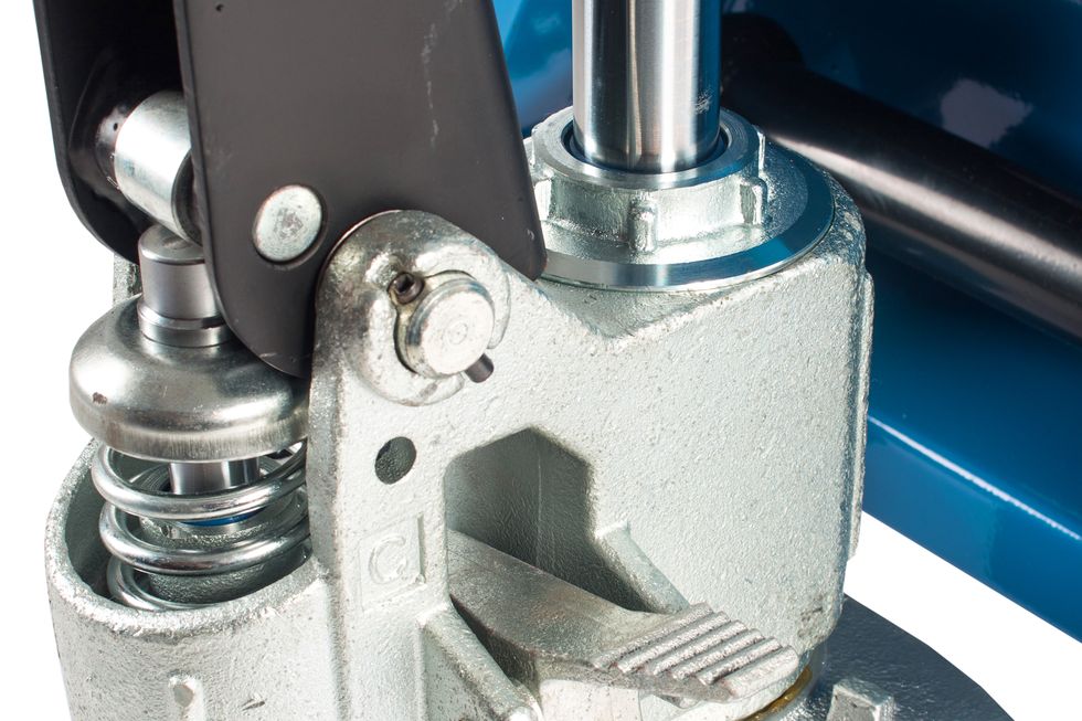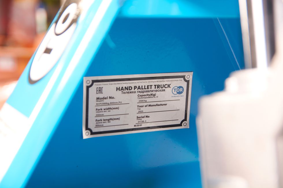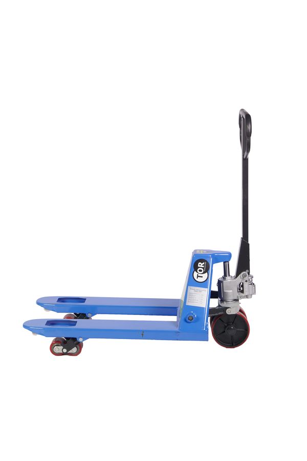 Тележка гидравлическая TOR RHP(BF) - премиальная модель с разборным гидроузлом, укрепленными вилами для интенсивной работы на складах с высоким товарооборотом.