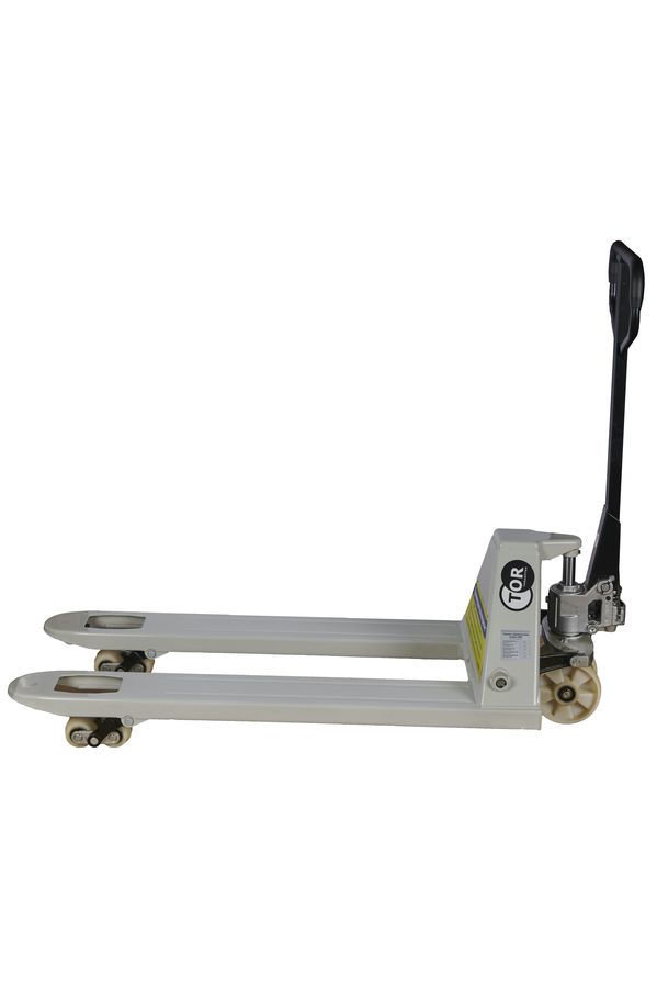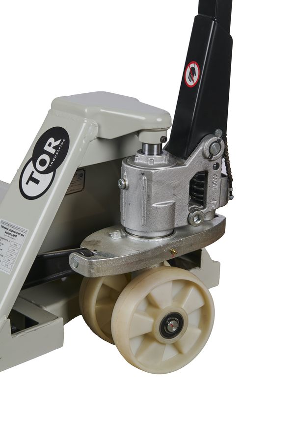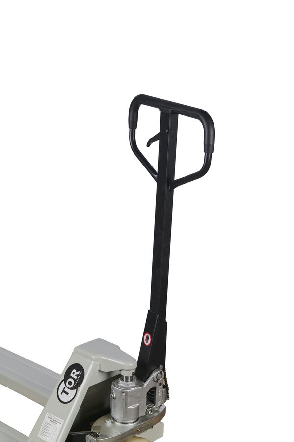 Тележка гидравлическая TOR RHP(BF)- премиальная модель с разборным гидроузлом, укрепленными вилами для интенсивной работы на складах с высоким товарооборотом.