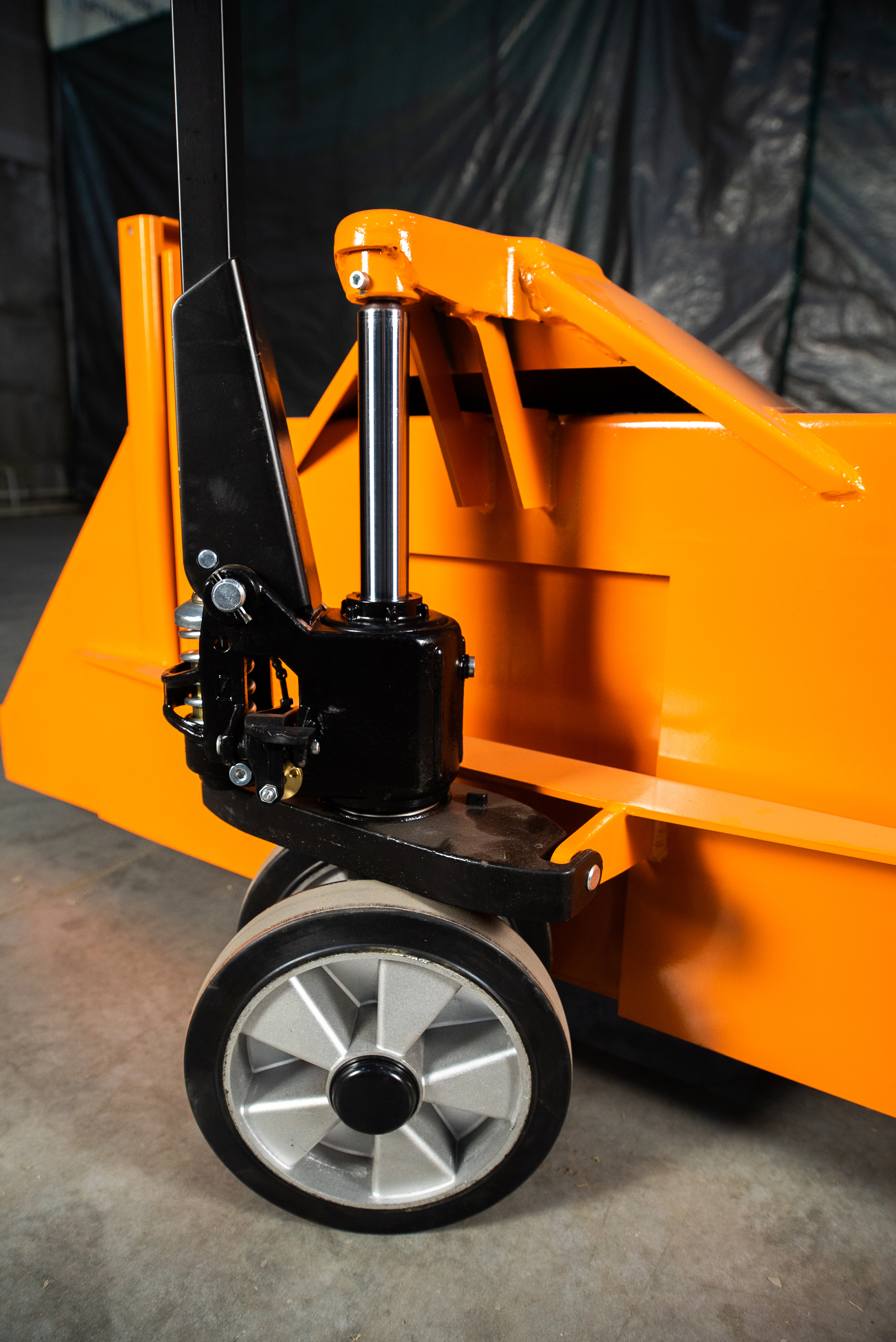 Гидравлическая тележка для бездорожья модели TOR RHW позволяет работать с паллетами на неровных участках.