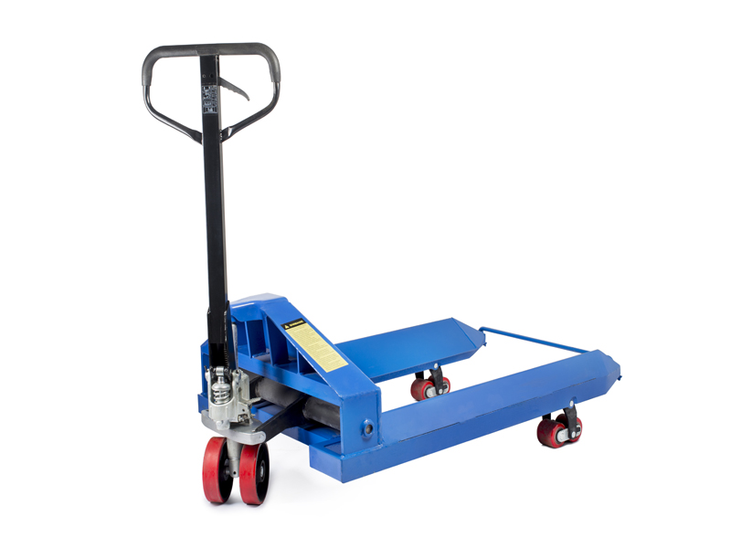 Тележки оснащены надежным литым гидроузлом и замком стяжкой вил.Эта тележка обладает грузоподъемностью 2.5 тонны и шириной вил 850, что позволяет возить рулоны диаметром от 500 до 800 мм.