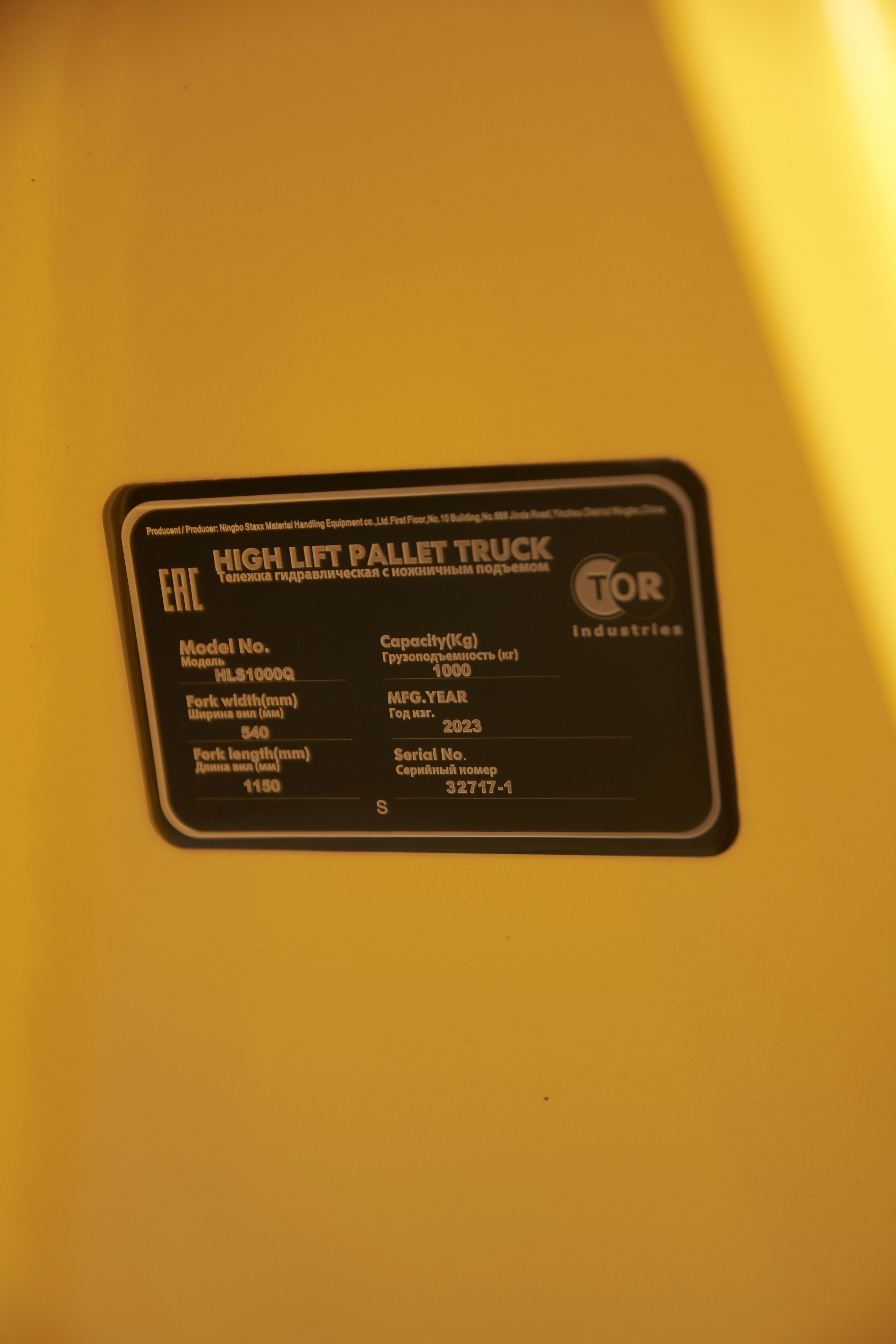 Грузоподъемность 1000кг, максимальная высота подъема 800мм.
