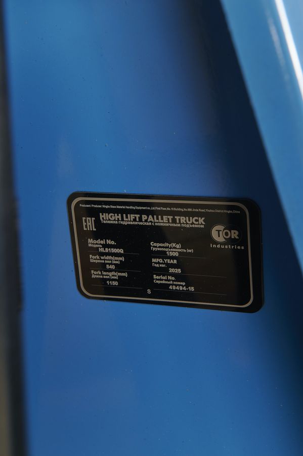 Грузоподъемность тележки составляет 1,5 тонны.Гидравлические тележки производства TOR – это простые и надежные в эксплуатации помощникина складе.