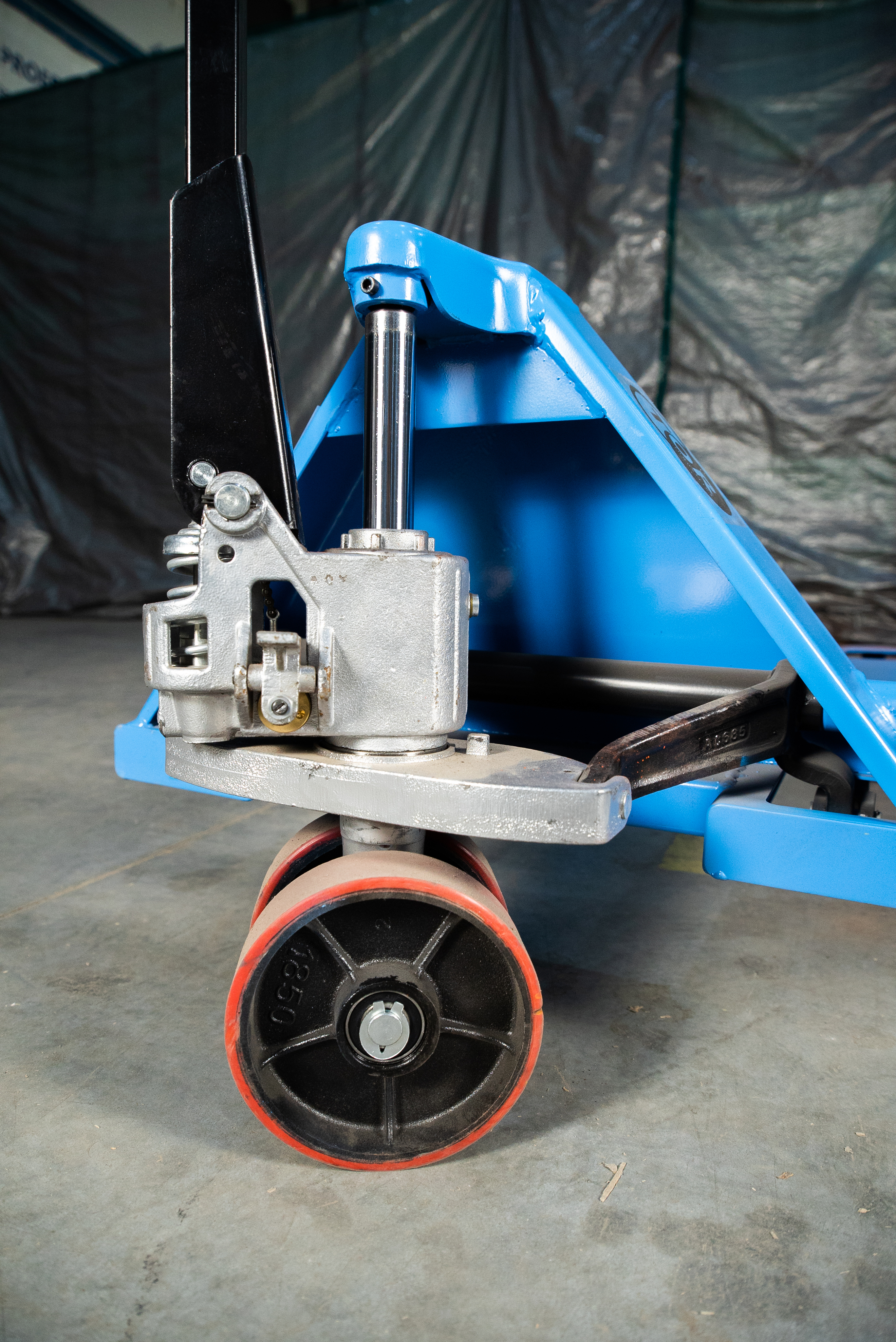 Ширина вил у данной тележки достигает 685 мм при грузоподъемности 2,5 тонны.