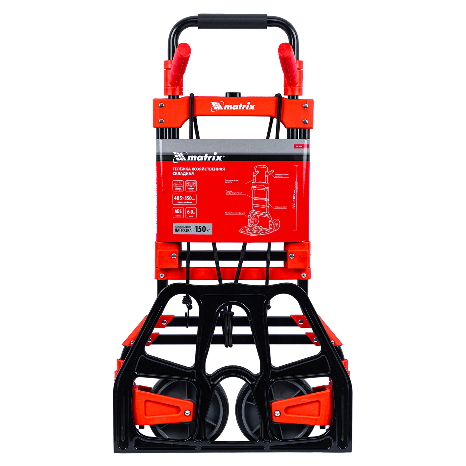Складная хозяйственная 2-колесная тележка Matrix 98208 предназначена для перемещения грузов массой до 150 кг. Телескопическая рукоятка позволяет регулировать высоту тележки в соответствии с ростом пользователя. Для размещения груза предусмотрена платформа размером 485 x 350 мм.