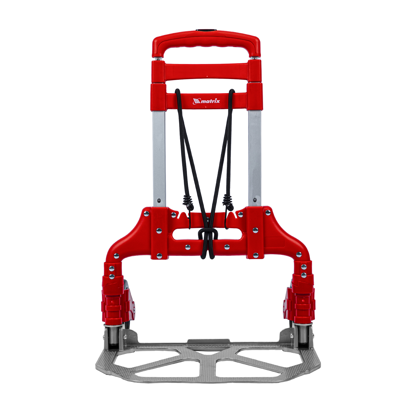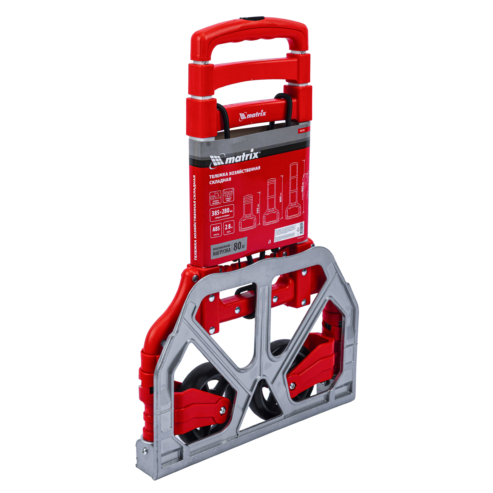 Складная хозяйственная 2-колесная тележка Matrix 98206 с алюминиевой рамой предназначена для перемещения грузов массой до 80 кг. Телескопическая рукоятка позволяет регулировать высоту тележки в соответствии с ростом пользователя. Для размещения груза предусмотрена платформа размером 385 x 280 мм.