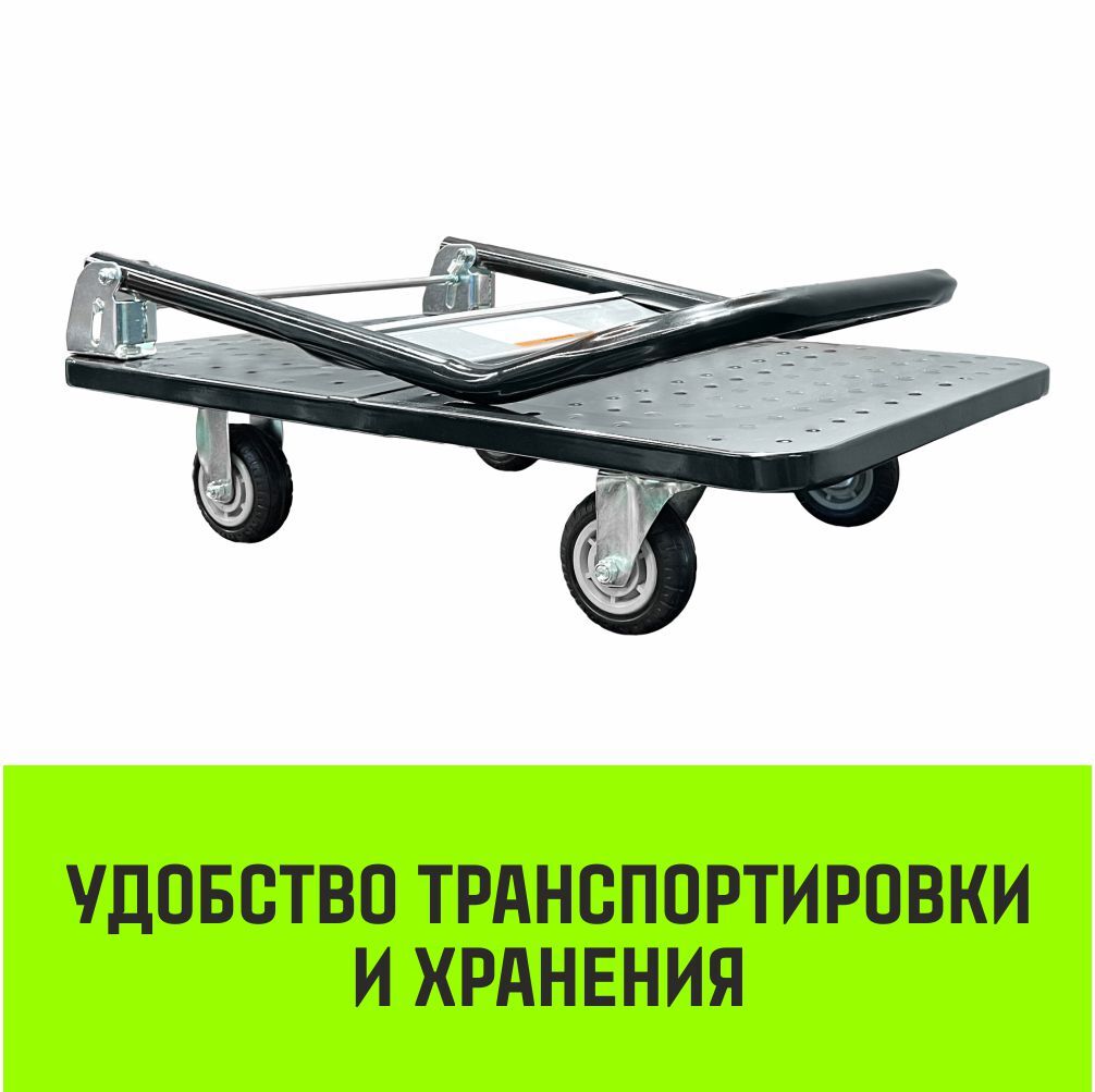 • компактные размеры и складная ручка тележки делают её удобной для хранения и перемещения