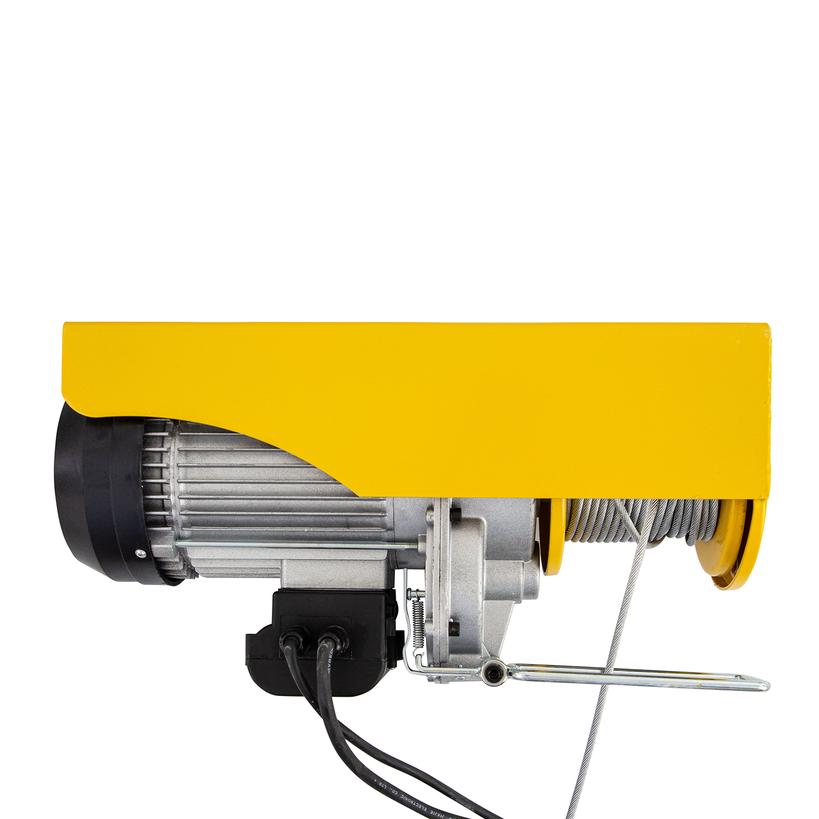 Электрический тельфер Denzel TF-1000 52016 мощностью 1600 Вт способен поднимать автомобильные двигатели, строительные материалы и другие грузы массой до 0,5 т напрямую и до 1 т с помощью блока полиспаста. Высота подъема составляет 6 м при использовании полиспаста и 12 м без него, скорость — 4 и 8 м/мин соответственно. Устройство пригодится в гараже, автомастерской или на строительной площадке. Полиспаст входит в комплект поставки.