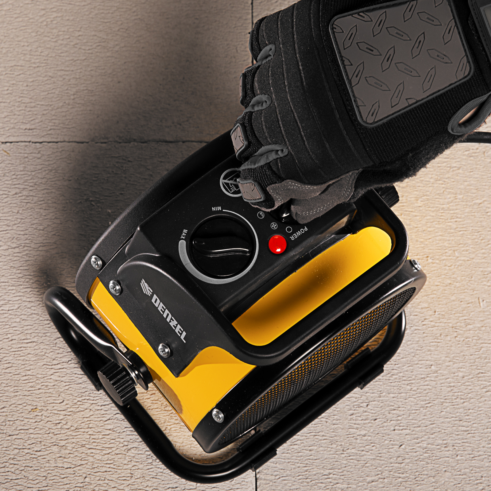 - Устойчивая конструкция — широкая опора с 4 ножками исключает опрокидывание тепловентилятора.
