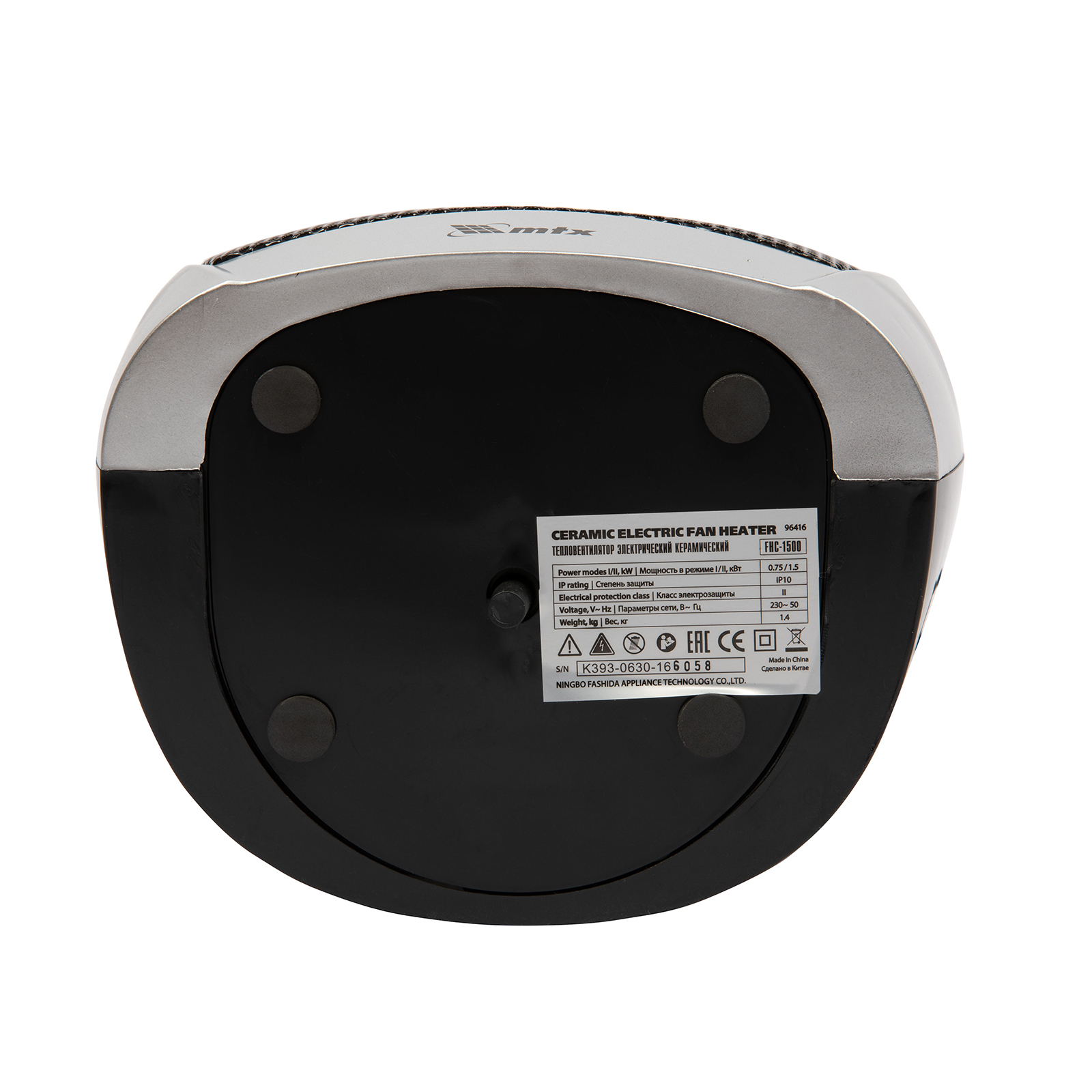 Тепловентилятор MTX FHC-1500 96416 работает в одном из трех режимов работы: вентиляция без нагрева, нагрев на мощности 750 Вт и 1500 Вт. Используется для обогрева комнат площадью до 20 кв. м на даче или в квартире. Тепловентилятор поддерживает необходимую температуру в холодную погоду и обеспечивает вентиляцию помещения в жару. Благодаря керамическому нагревательному элементу устройство не сжигает пыль, не выделяет вредных веществ и не сушит воздух, а также отличается повышенной пожаробезопасностью.