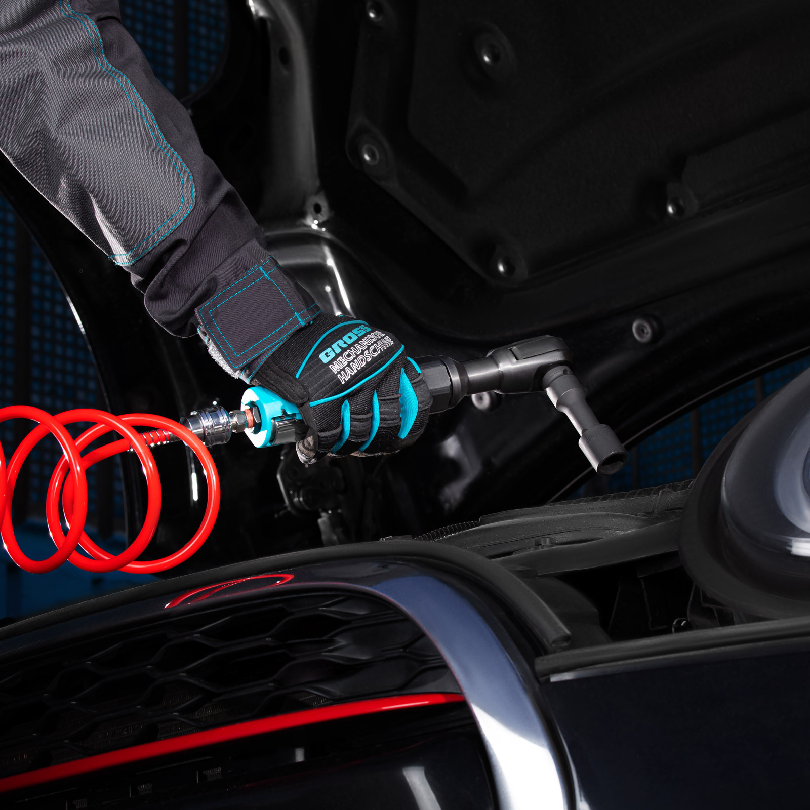 Пневматическая трещотка Gross G120 57446 с присоединительным квадратом 1/2″, максимальным крутящим моментом 122 Нм и частотой вращения вала 160 об/мин, обеспечивает быстрое закручивание и выкручивание резьбового крепежа. Благодаря небольшому вытянутому корпусу идеально подходит для работы в труднодоступных местах, где невозможно использование стандартного гайковерта. Расход воздуха составляет от 105 л/мин, поэтому инструмент можно использовать вместе с компрессором небольшой мощности. Пневмотрещотка применяется на предприятиях машиностроения, в сборочных и слесарных цехах, в частных мастерских и шиномонтажных центрах.
