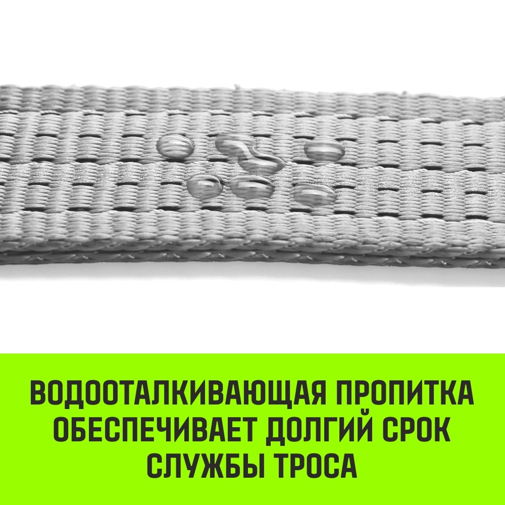 • компактность: легко помещается в багажнике, занимая минимум места Производятся по технологии TERMO — TEX: Она заключает в себе два обязательных этапа — термофиксацию материала и его растягивание. Ленту окрашивают и разравнивают при высокотемпературном режиме. Достигаются точные показатели допустимого растяжения. Благодаря этому, буксировочные тросы HITCH REGULAR обладают уникально низким процентом удлинения при максимальной нагрузке (менее 6%). Водоотталкивающая пропитка: защищает трос от негативных воздействий влаги, перепадов температур и ультрафиолета. Усиленные петли повышают срок эксплуатации Автоматизированные линии: кроя и сшивки ленты исключают брак на 99% Безопасная буксировка: Буксировочная лента HITCH REGULAR предназначена для безопасной буксировки транспортных средств методом гибкой сцепки и не предназначена для вытягивания застрявшего автомобиля. Характеристики: